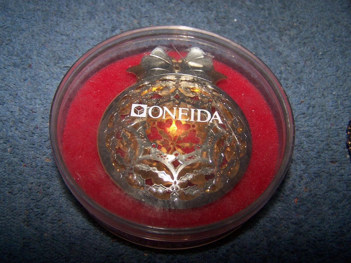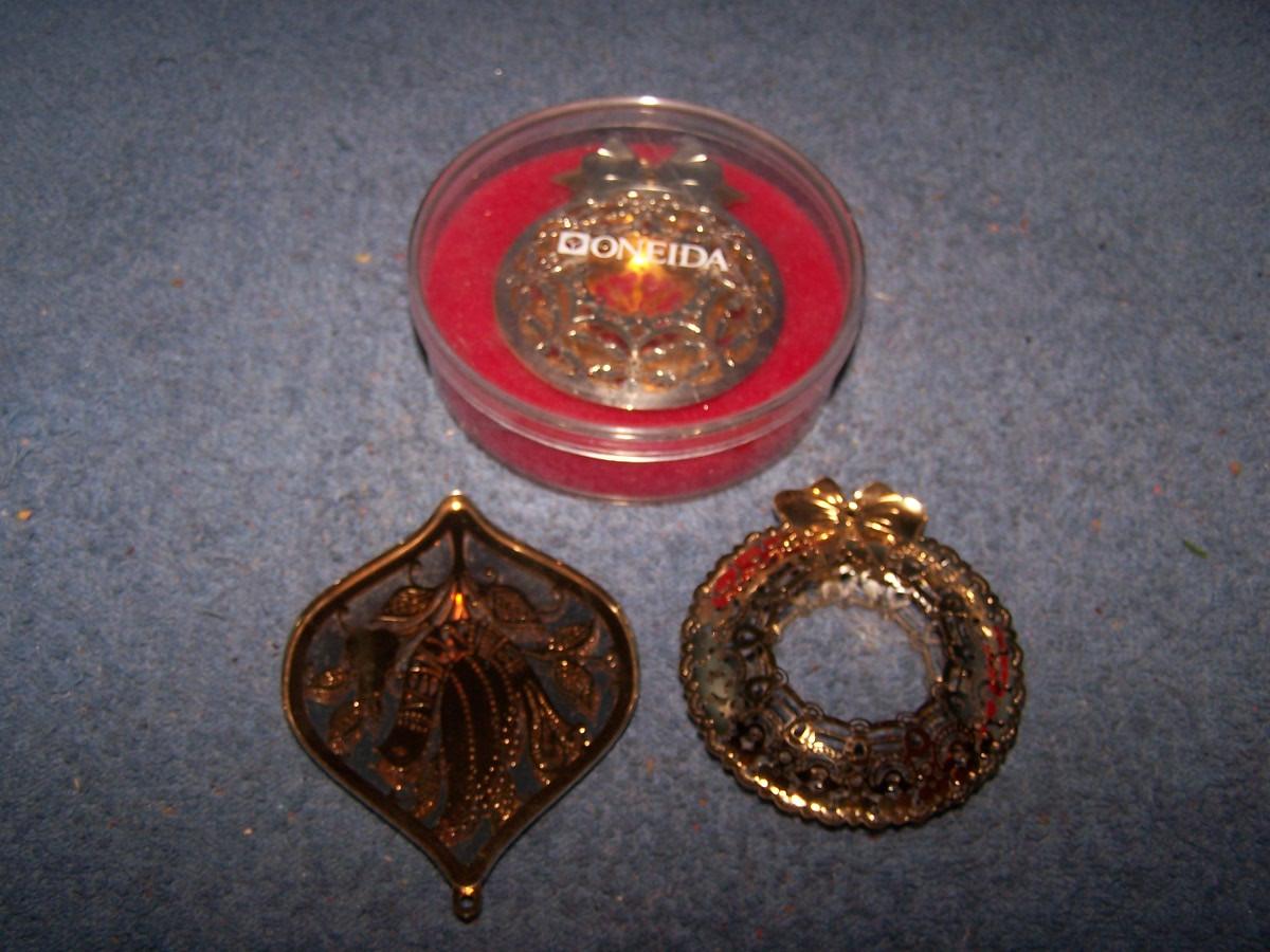 THESE ARE LOVELY CHRISTMAS COLLECTABLE ORNAMENTS! GORHAM IS GLASS, ONEIDA IS METAL.. LIGHT WEAR..