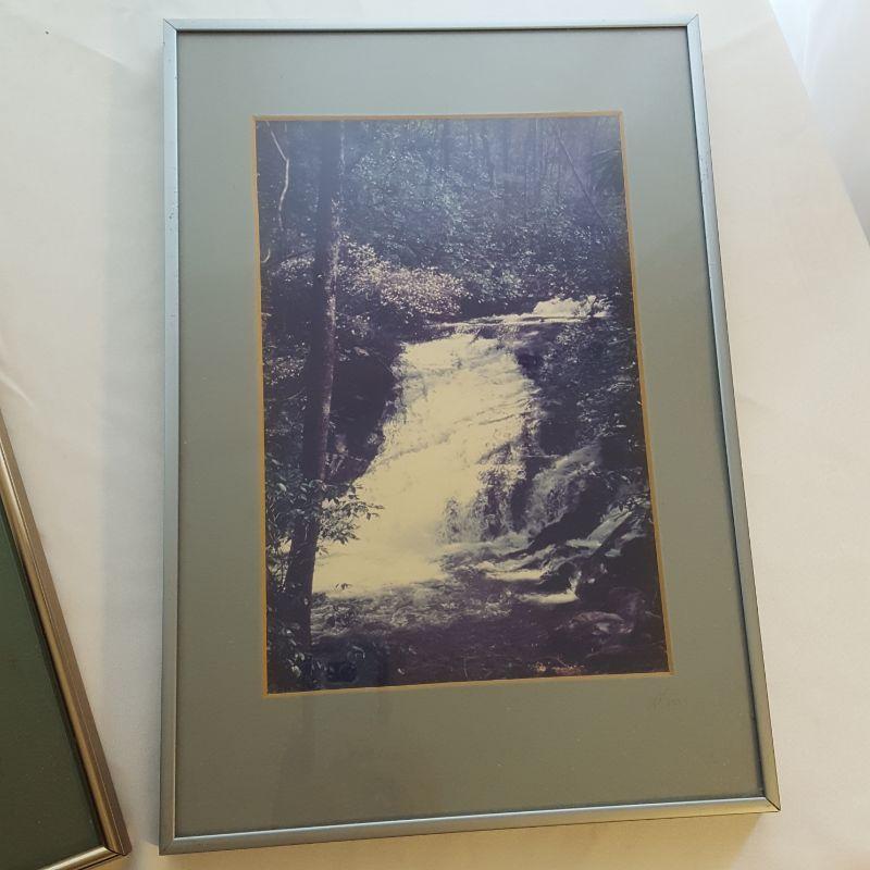 Celebrate our local beauty and be reminded of it even more with these four framed photographs. The group of three are all of N.C waterfalls by William Rolen and measure 16" x 11". This lot also contains 14 books based on North Carolina and its nature. Learn about N.C in the Blue Ridge or Asheville A Pictorial History in this collection. The largest framed and signed art is by Tad Stamm and measures 16 x 20 inches.