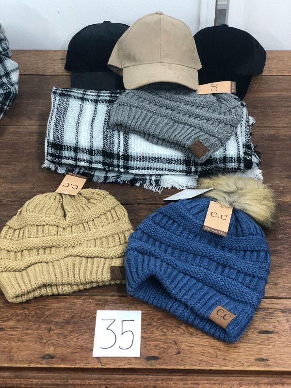 Lot 35 NWT Three CC Beanies, Three Hats, One Scarf