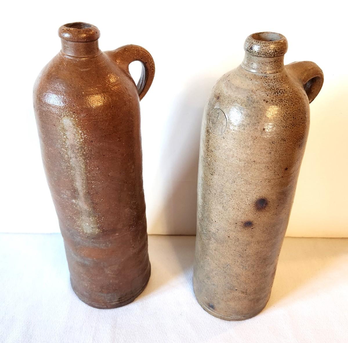 Lot #35 Pair of Old Beer/Whiskey Bottles or Jugs - Salt Glazed