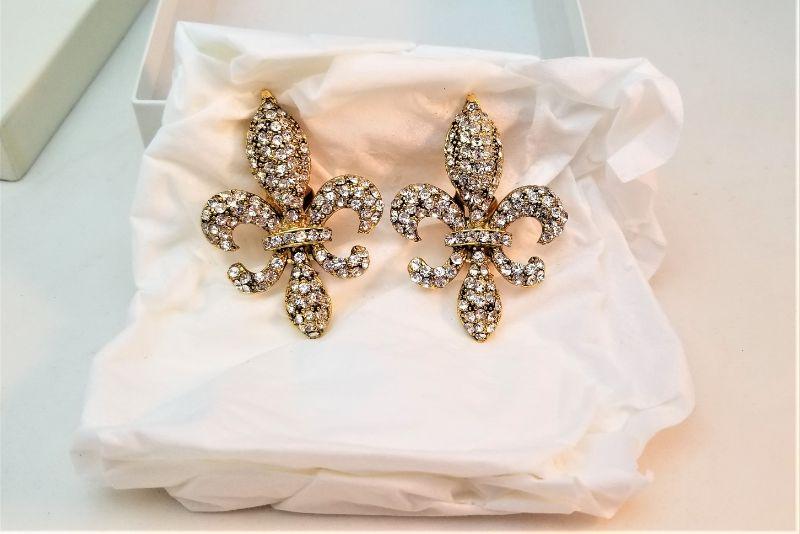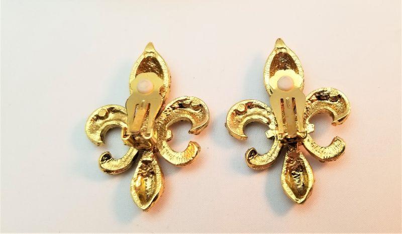 Lot #35  Pair of vintage Graziano clip-on earrings - Fleur di Lis