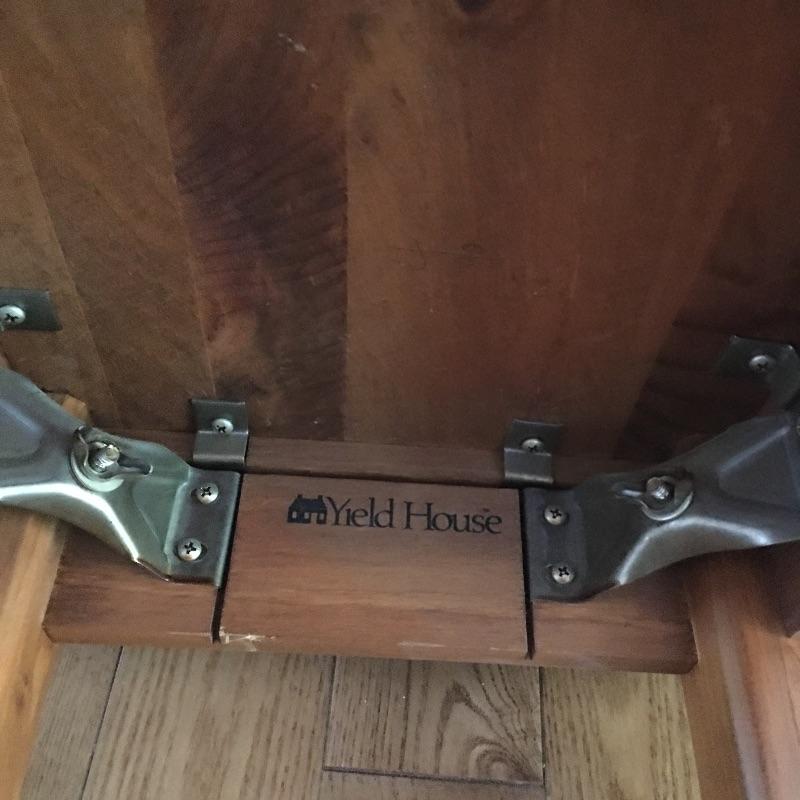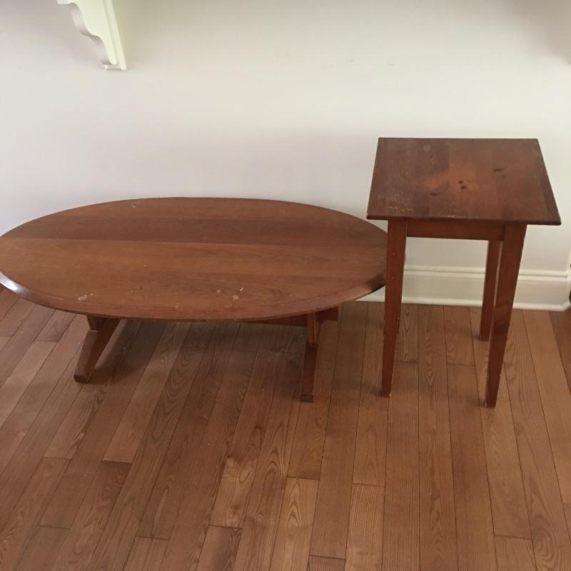 Pair of wooden tables. Lot includes oval coffee table and a Yield House side table.