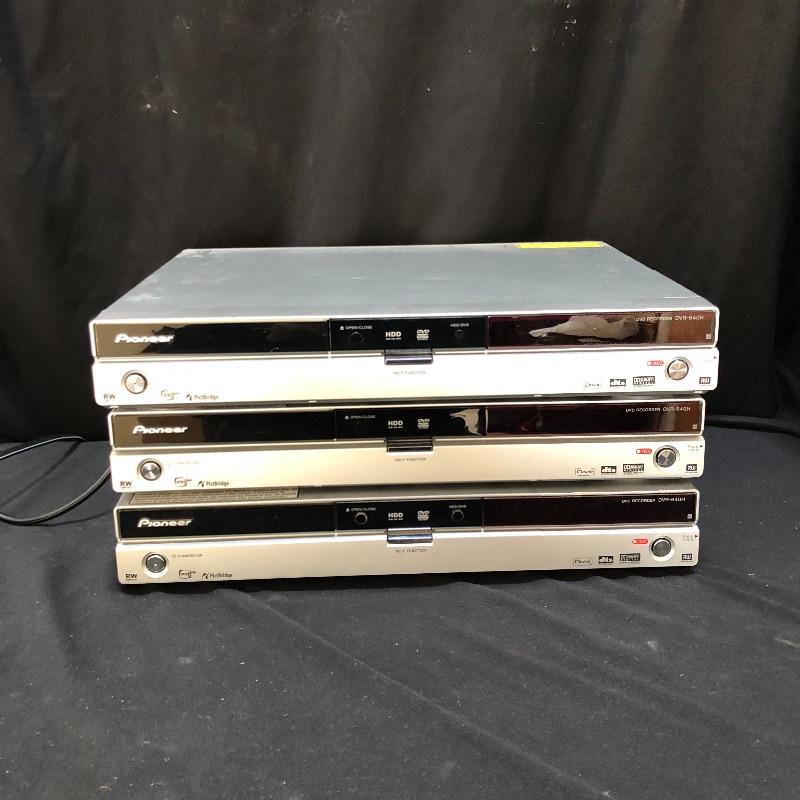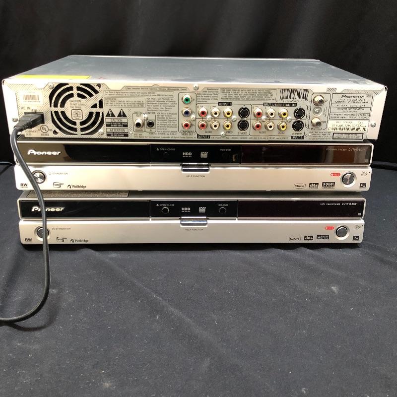 Record all your favorite shows with these three DVD recorders. Lot includes three Pioneer DVD Recorders model # DVR-640H. All three units powered on when tested. Two cords and remotes available at pick up if needed.