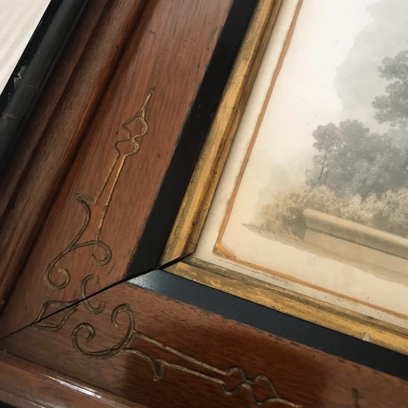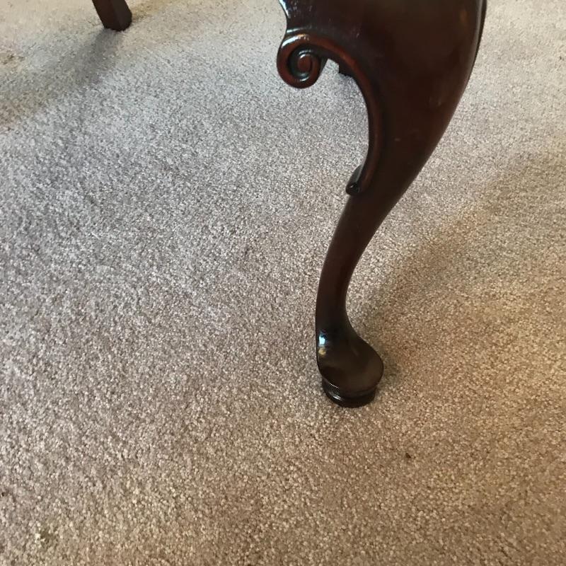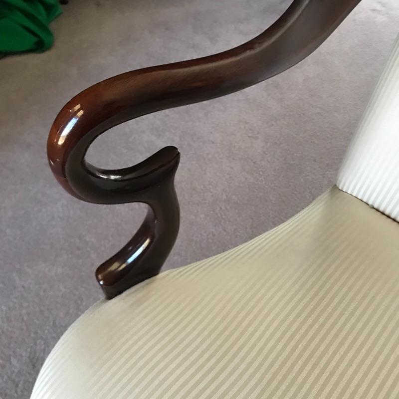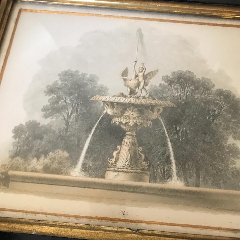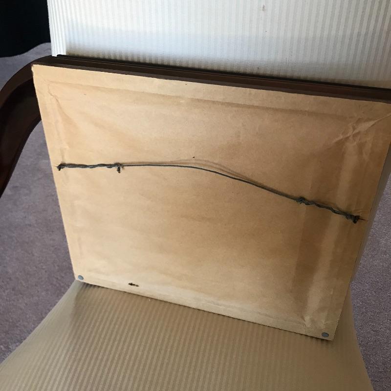 This elegant lot includes a high back Queen Anne chair marked Rist Corporation as well as Carr and Company from Morganton, NC. It also includes a framed fountain print. Chair is approx. 27” x 25” x 44” h and in great condition aside from some small stains on upholstery fabric. Print is approx. 15” x 13”. Local pickup only.