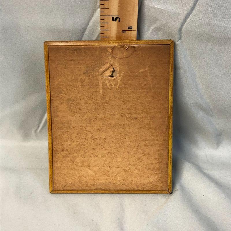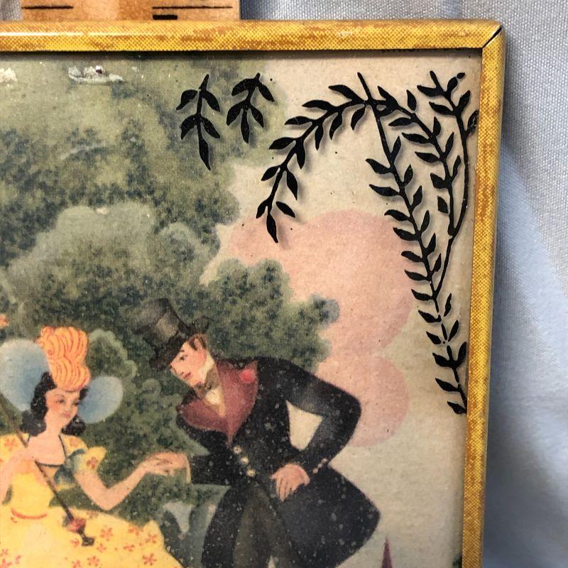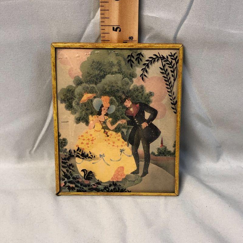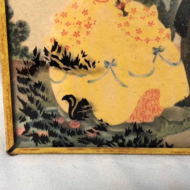 This print is in very good condition. The bubble glass has black painted floral and a squirrel to add to the picture. It is about 5" x 4".