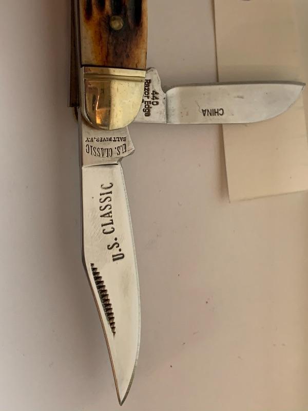 LOT # 35 RR US CLASSIC ROUGH RIDER POCKET KNIFE 440 RAZOR EDGE ** CAN BE PICK ED UP IN CROOKED RIVER RANCH OR I CAN SHIP FOR $5