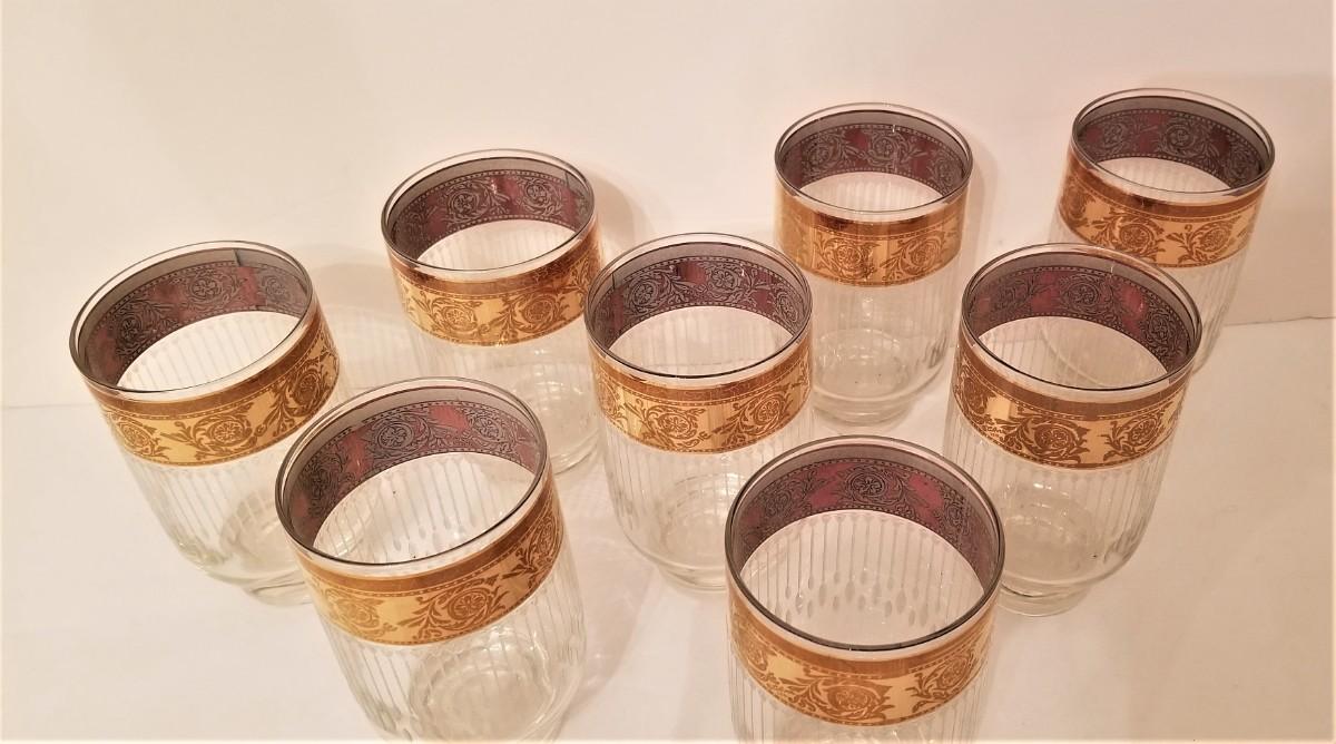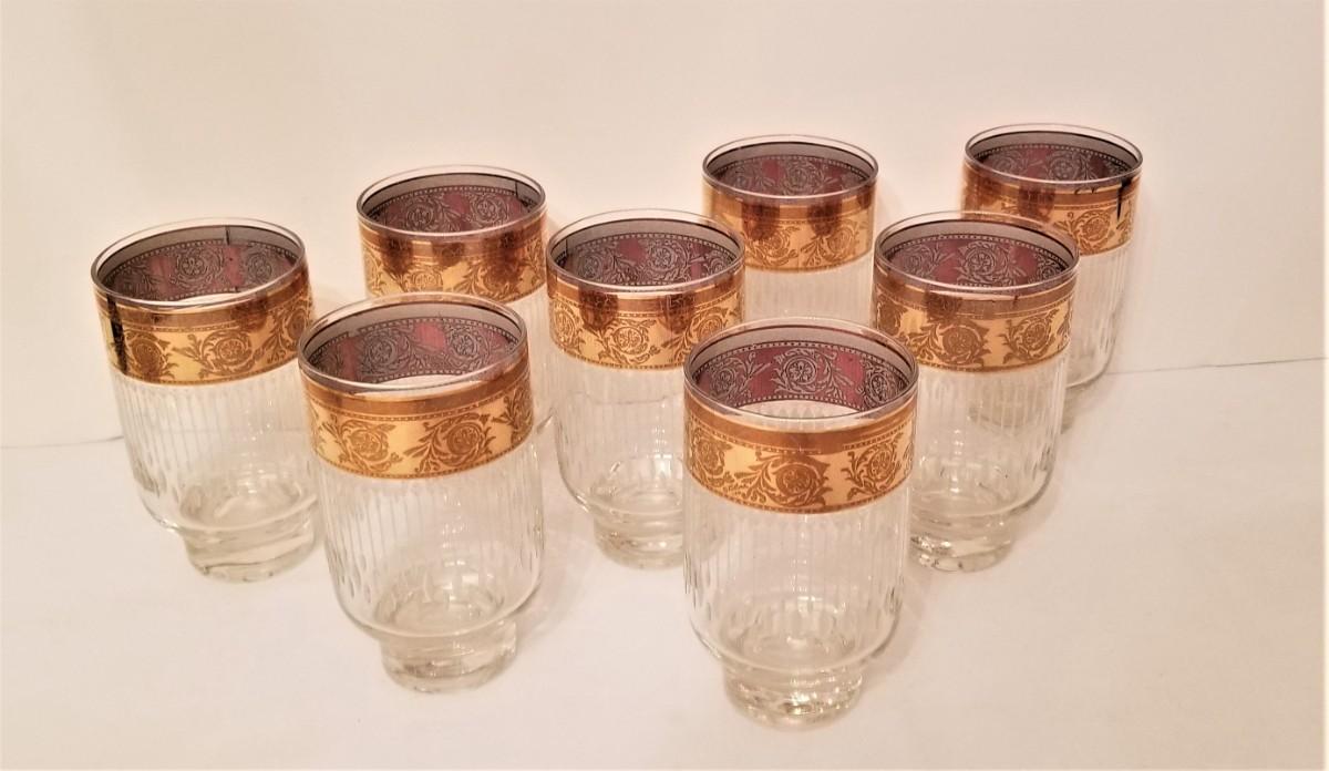 Lot #35  Set of 8 Mid Century Modern Glasses -Gold edging
