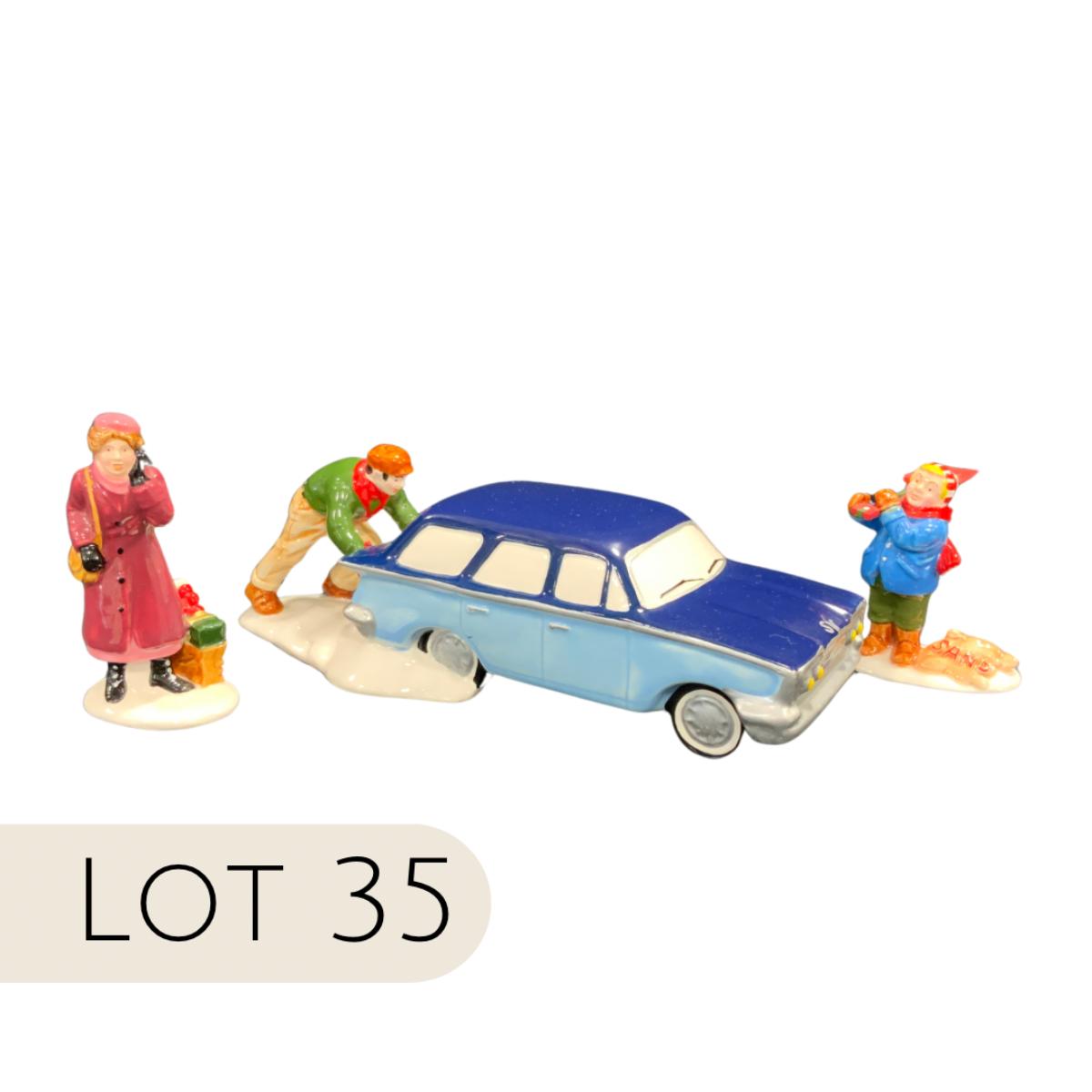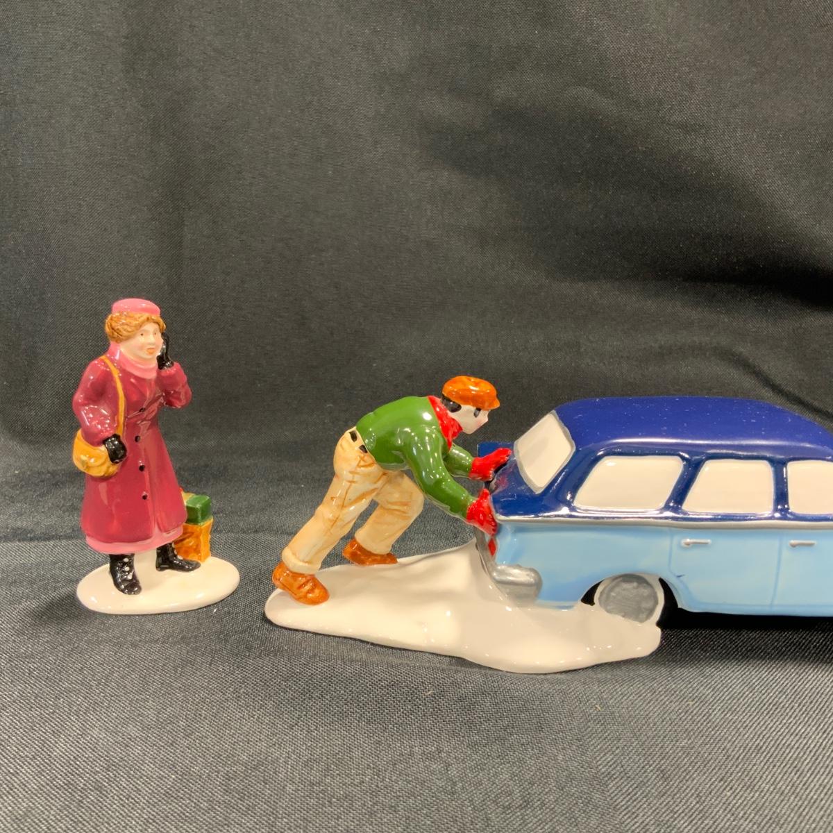 Oh man. We’ve all been there before, right? Department 56 Snow Village Stuck in the Snow figure trio. Please see photos for details and condition. ::: Shipping is available on this lot. If you require shipping you must let us know at the close of the auction. We will coordinate with you after the item has been won. Shipping fees will include insurance up to or exceeding the value of all items being mailed. If you have any questions regarding this lot please contact the auctioneer either via this website, by direct email or by phone. PICK UP TIMES and other important information can be found in the TERMS and DESCRIPTION of the auction. Please take a look for pertinent information. Thanks! Any condition statement is given as a courtesy to a client, is an opinion, and should not be treated as a statement of fact. Reference to condition written, oral or within a condition report shall not be regarded as a full account of condition and may not include all defects, alterations, or restorations. Absence of a condition report does not imply a lot is flawless or lacking imperfections or damage. Katherine’s Auction & Appraisal Service shall have no responsibility for any error or omission. Returns shall not be accepted on the basis of condition.