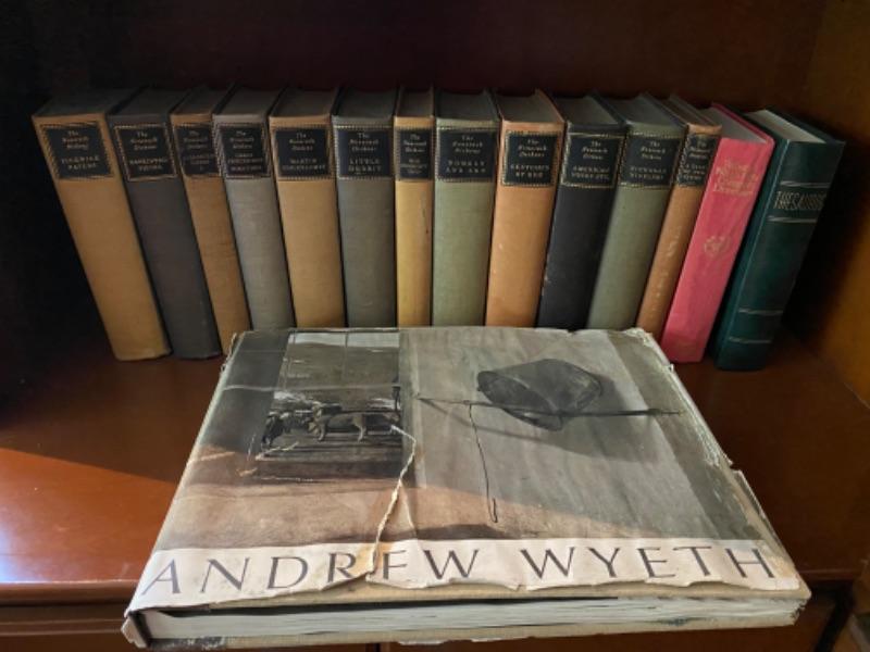 Set of 12 the Nonesuch Dickens with Andrew Wyeth (warped pages) and Dictionary , Thesaurus