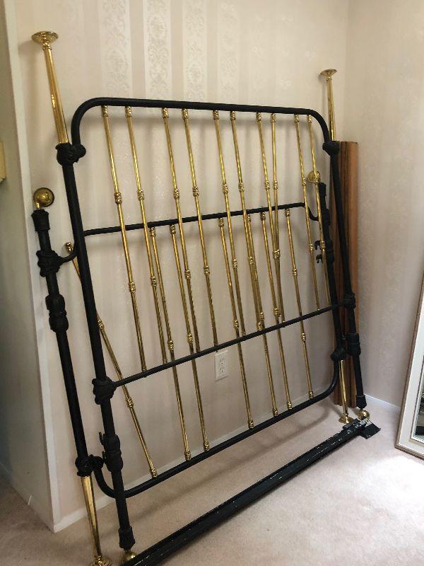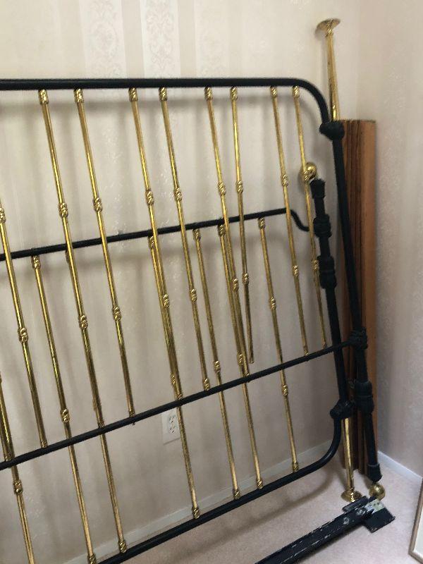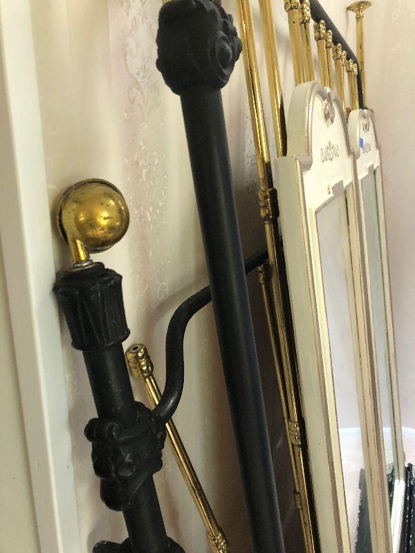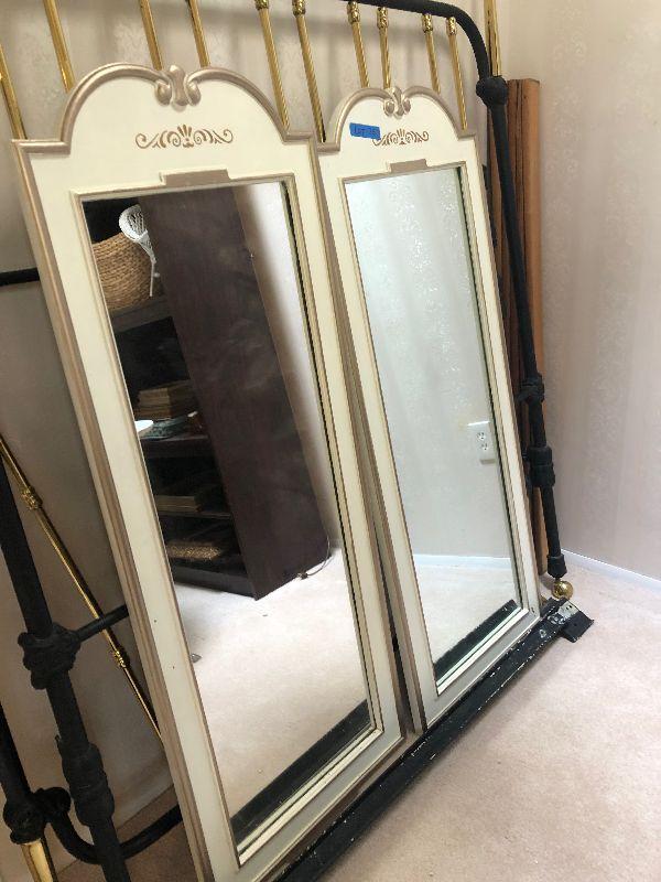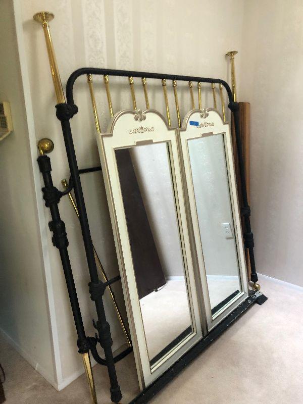 2 Thomasville mirrors and 56" w 2 tone (brass?) heavy metal bedframe.