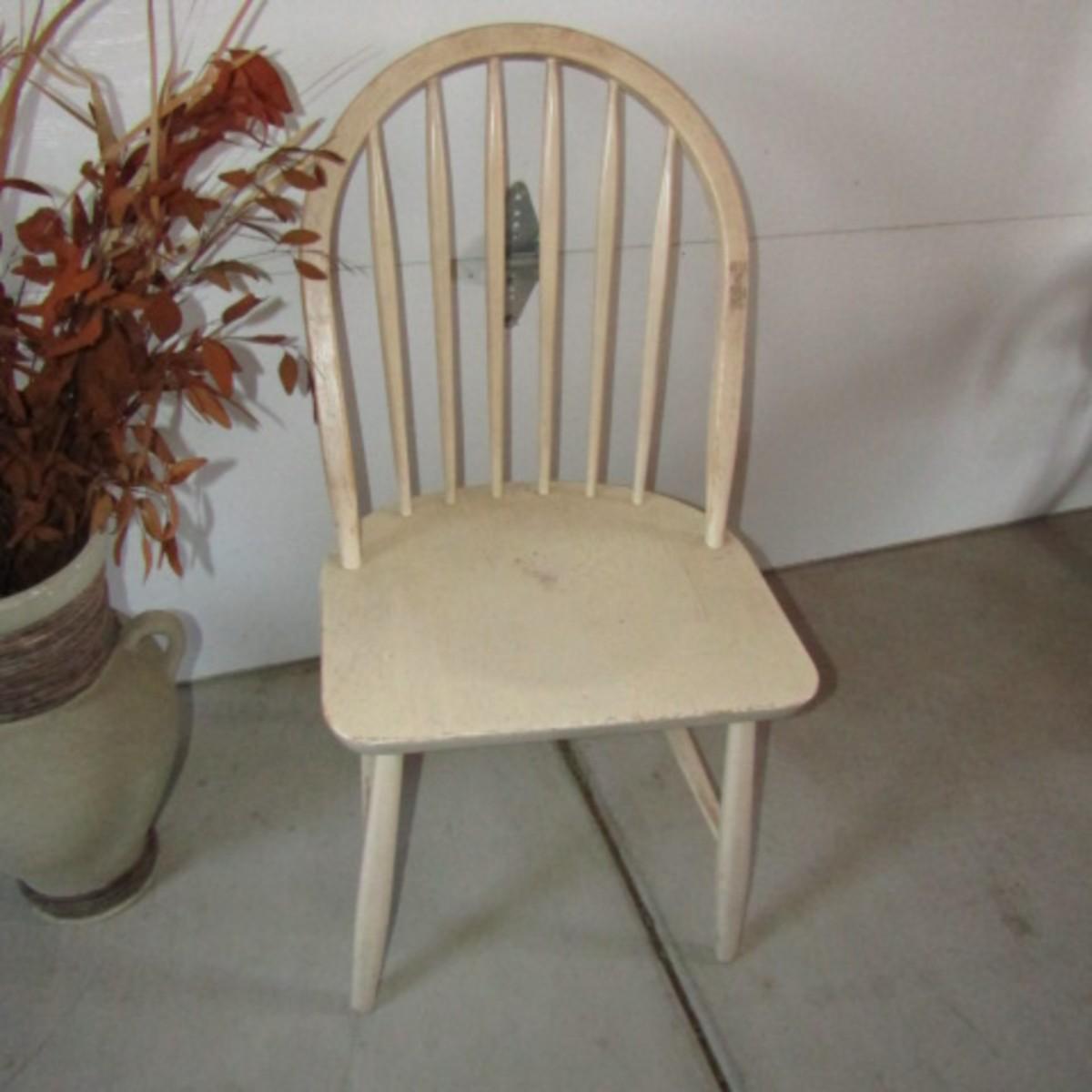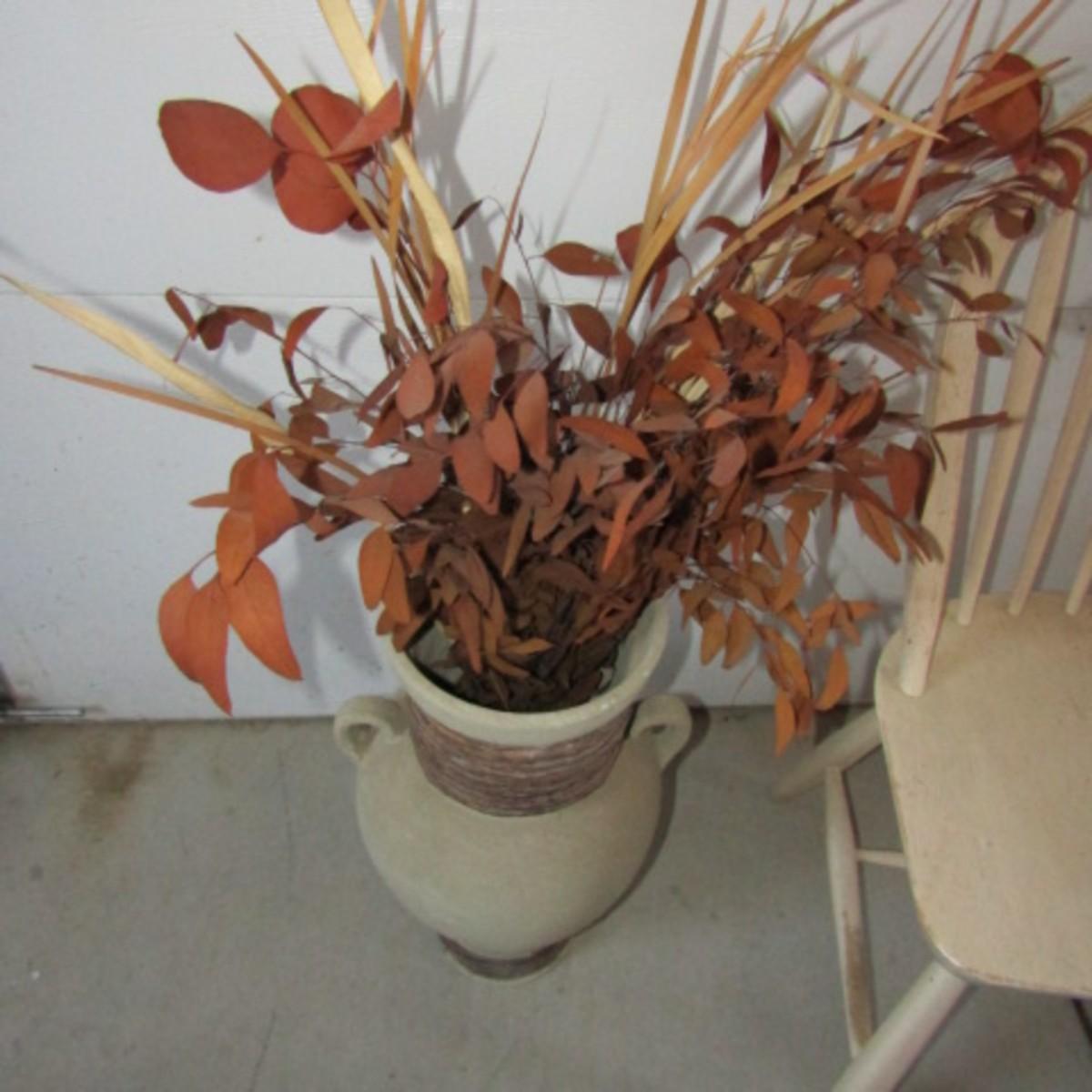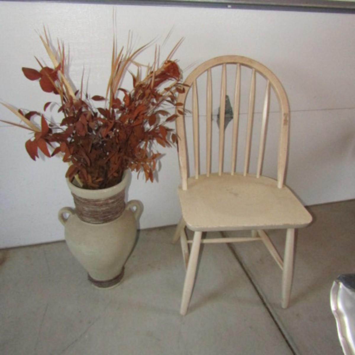 LOT 35  TWIG ACCENTED FLOWER POT AND 2 WOODEN CHAIRS (W)