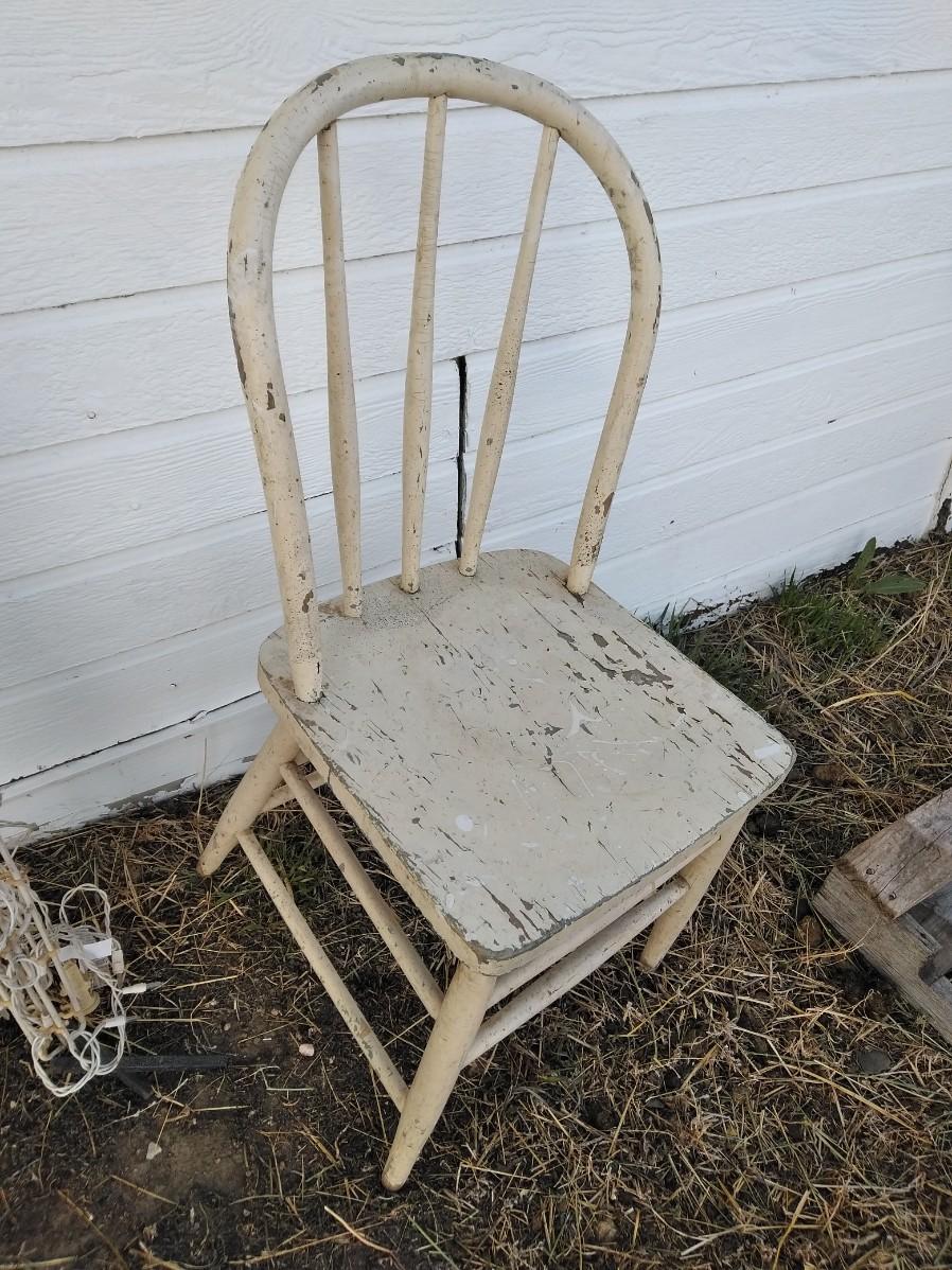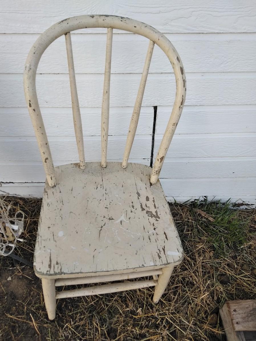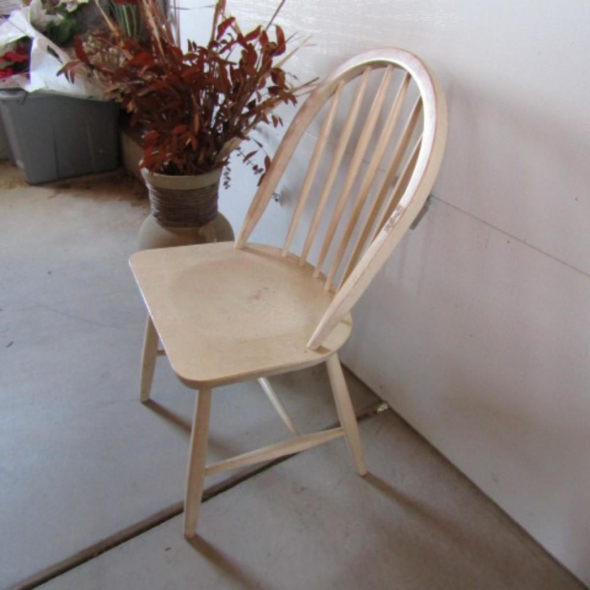LOT 35  TWIG ACCENTED FLOWER POT AND 2 WOODEN CHAIRS (W)