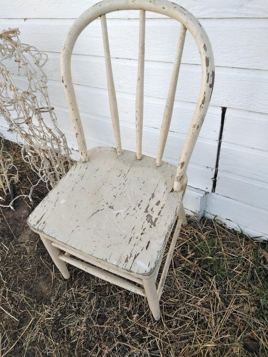 LOT 35 TWIG ACCENTED FLOWER POT AND 2 WOODEN CHAIRS (W)