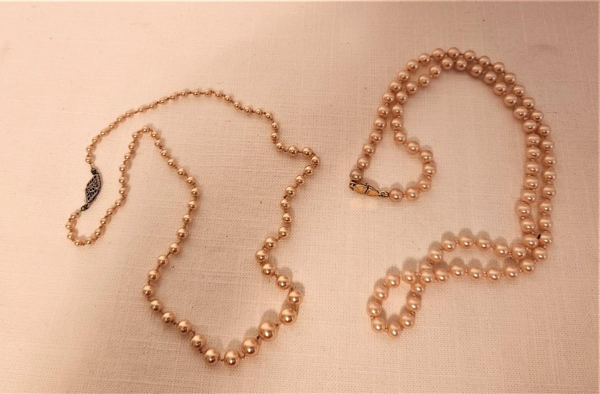 Lot #35 Two Strands Costume Pearls, one with 10KT White Gold Clasp