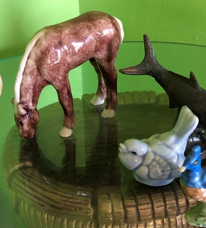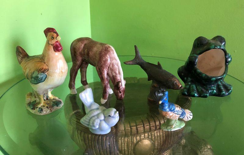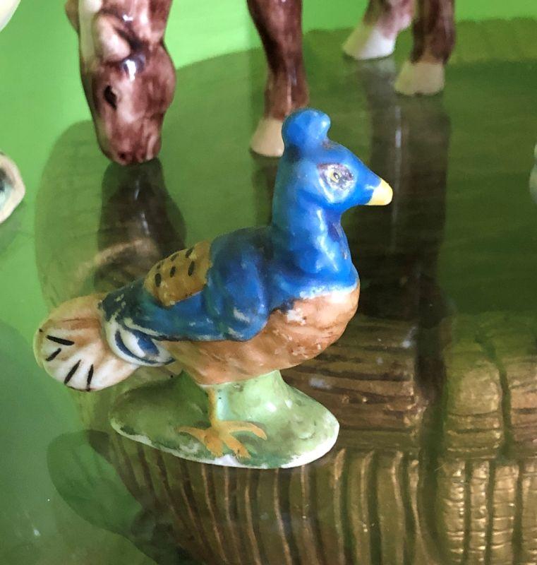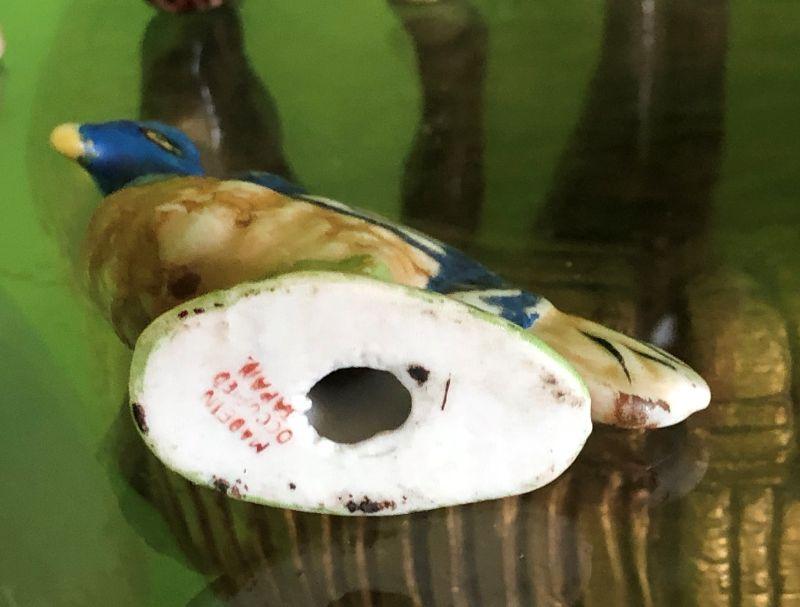 The bird is vintage Made in Japan. They are in good condition with the only noticeable issue being the frog sponge holder. He has a spot of chipped paint on his back.