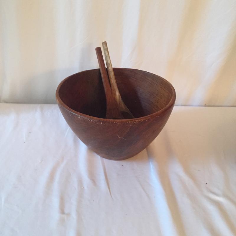 Wooden salad bowl measures 11.75” D.