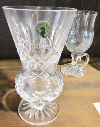 LOT 35  WATERFORD VASE & IRISH COFFEE GLASSES