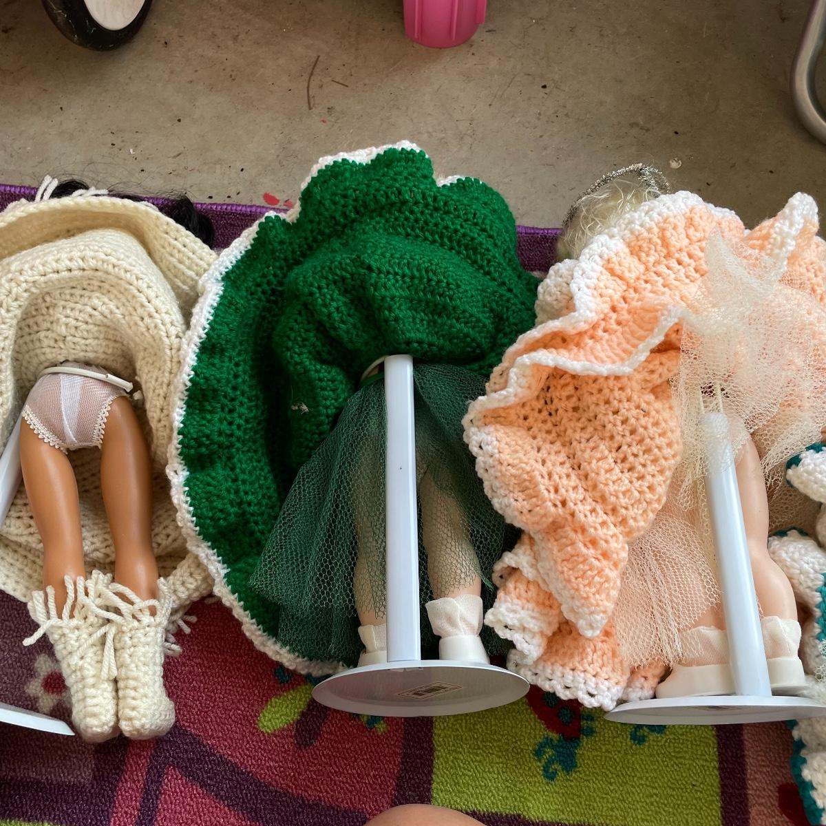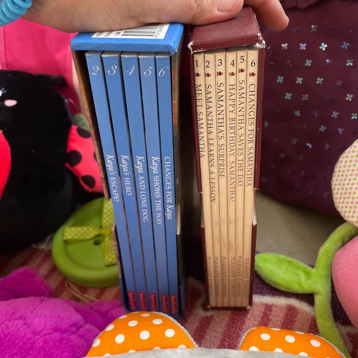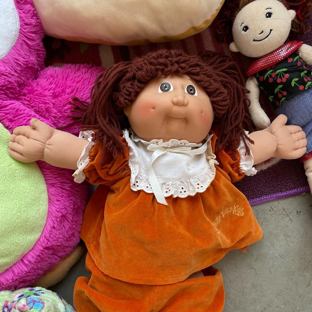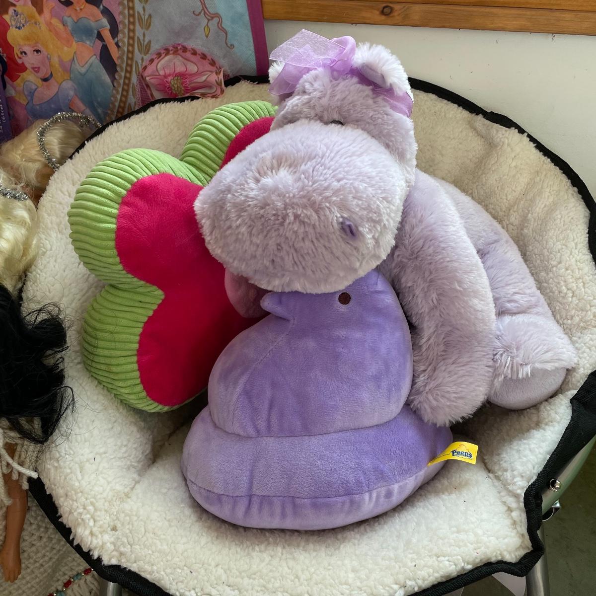 Here’s a great decorative addition to those littles who love pink! Lot features nine Disney Princess foam floor tiles and a lightweight cloth bean toss triangle frame (no bean bags) plus a sturdy plastic RadioFlyer scooter with three wheels, perfect for the beginner! A cute papason style chair, a 1985 Cabbage Patch doll with cabbage patch clothes (the waist band has lost its elasticity, but otherwise it’s in great shape), plenty of owls and lady bugs, bears and dolls. The three Angel dolls and the Native American are plastic and have stands to keep them upright. The smaller two angels with red dresses have porcelain faces mixes with cloth bodies and plastic shoes. Two sets of American Girl Doll books (Kaya is missing book #1) and an adorable Hop Scotch rug that will keep everyone playing on the rainiest days with a hand painted parasol for sun protection! Rug measures approximately 57” x 31.25”. See images for more information. Local pick up only.