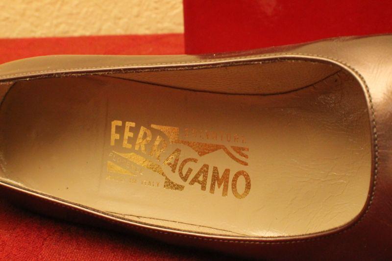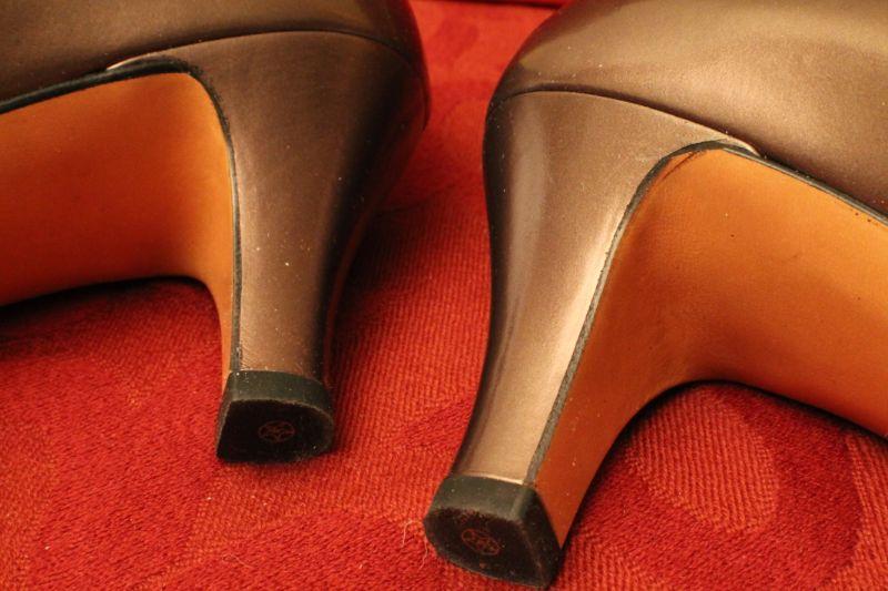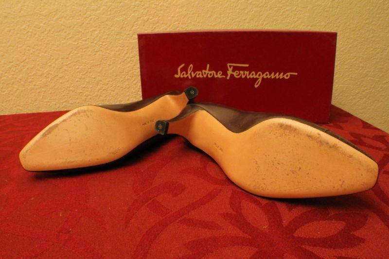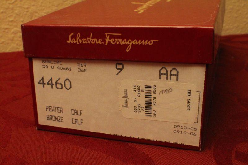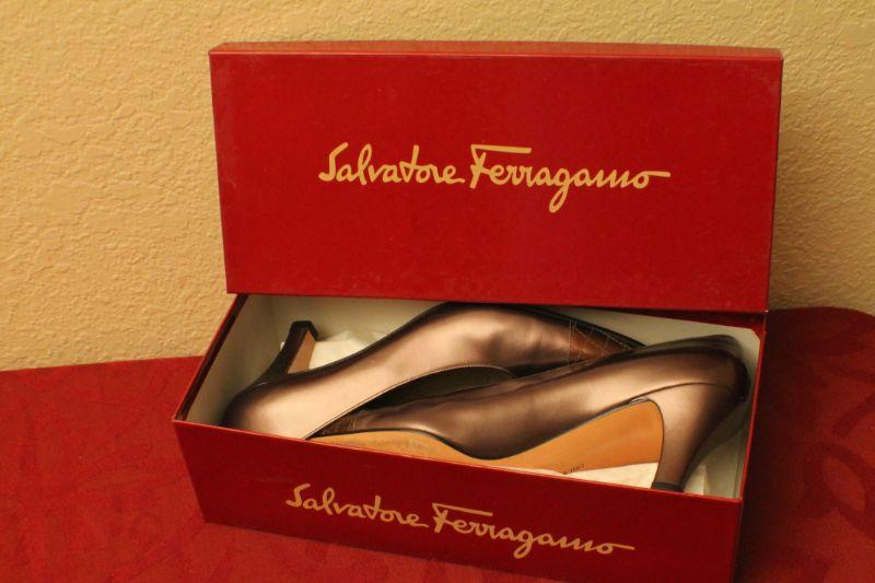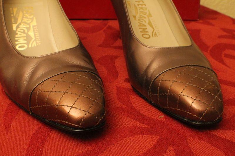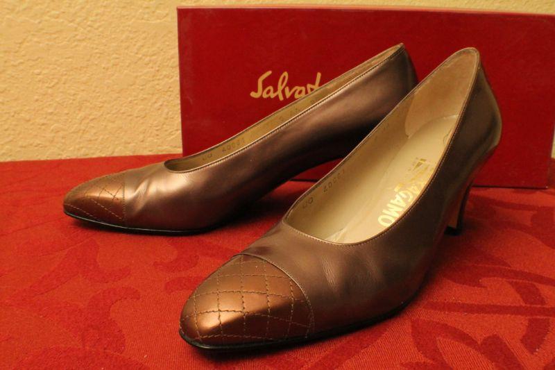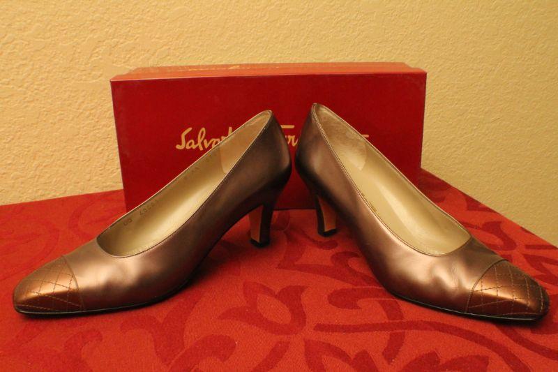 LOT #350: Salvatore Ferragamoâ„¢ Pewter and Bronze Heels SIZE 9 AA