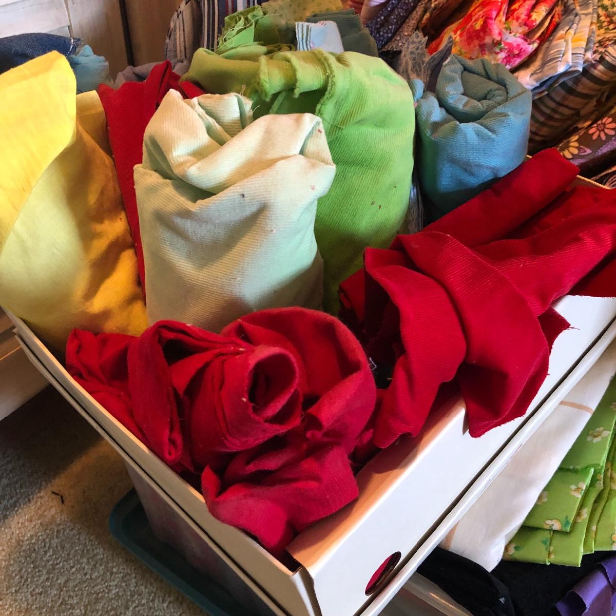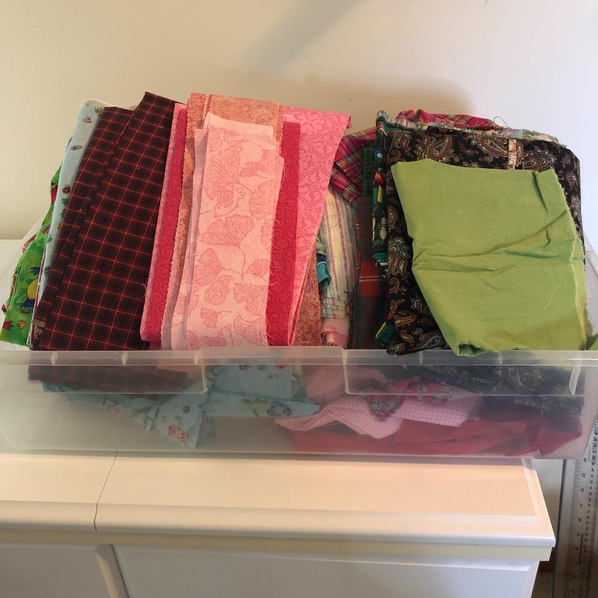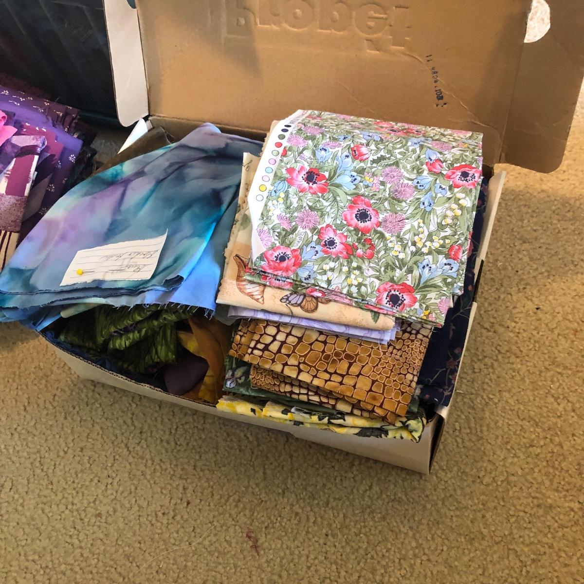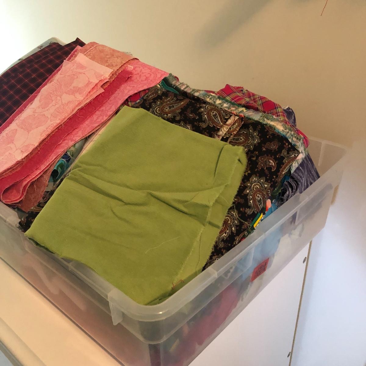 Wow! What a lot of material! Never buy fabric again from a retail store! Most of the material appears to be cut from bolts of fabric. The Fabric in this lot includes corduroy, flannel, felt, cotton and comes in plaids, batiks, florals, striped, plain, polka-dots and more! There are seven boxes and four plastic containers of material! Local pick up only.