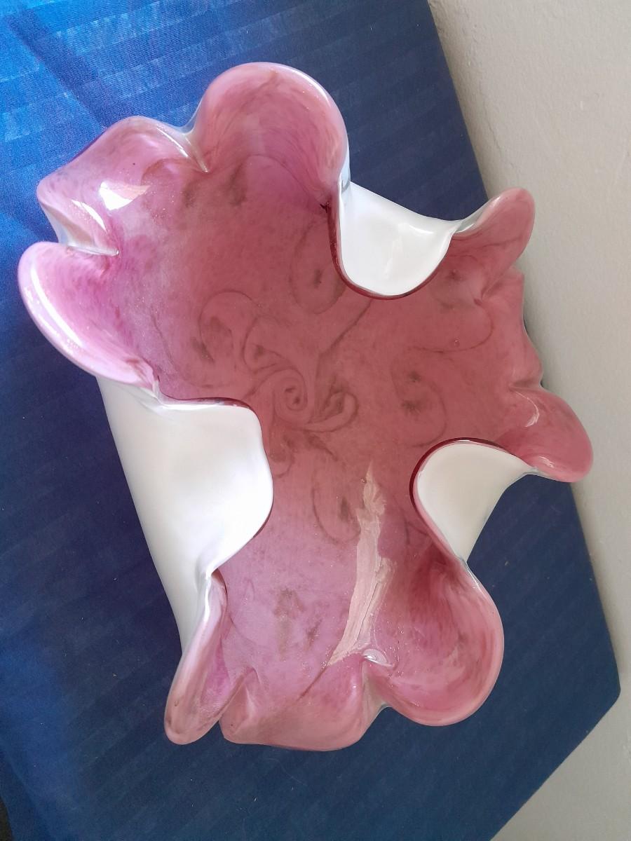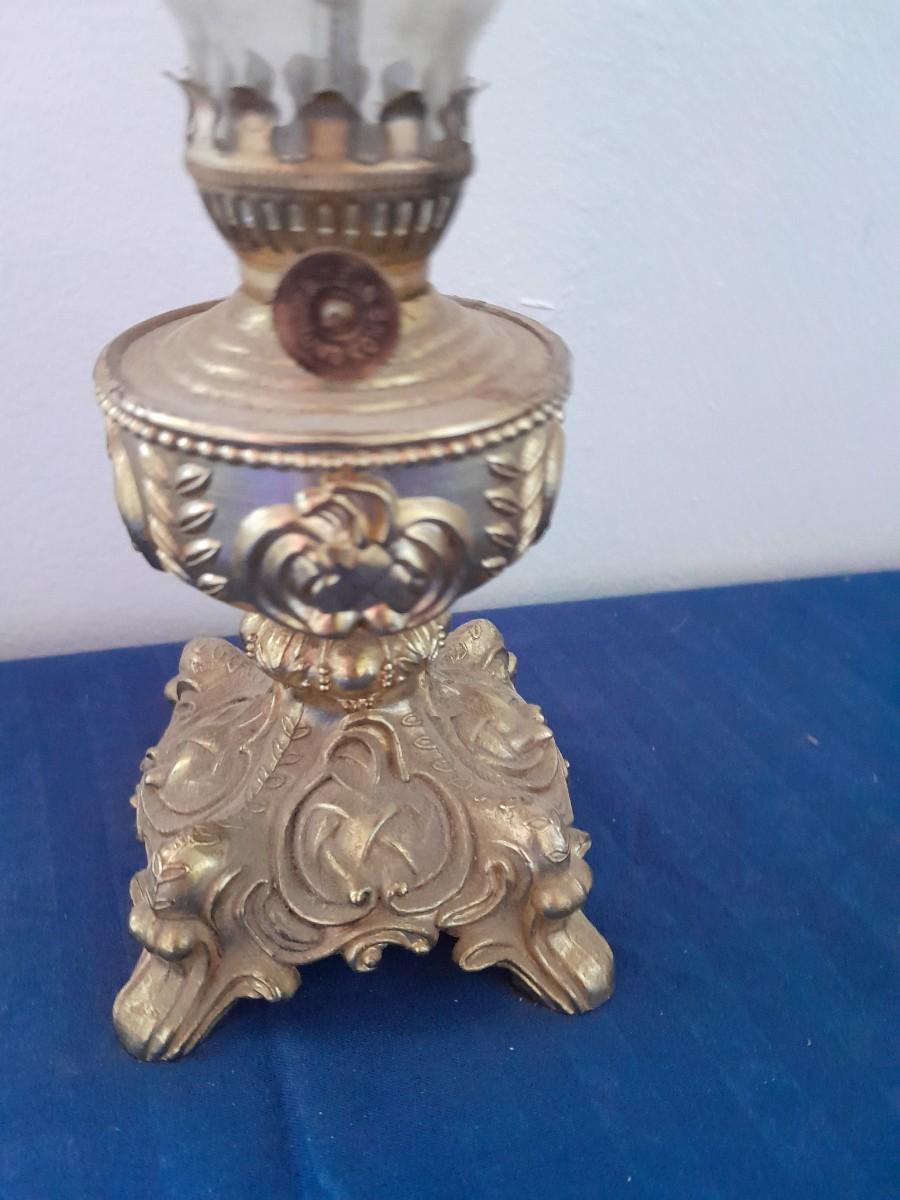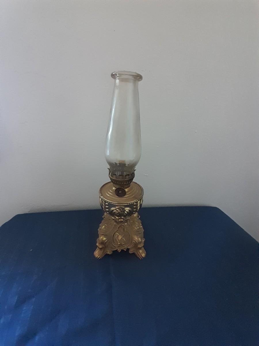 UNIQUE GLASS DISH, AND GOLD COLORED OIL LAMP