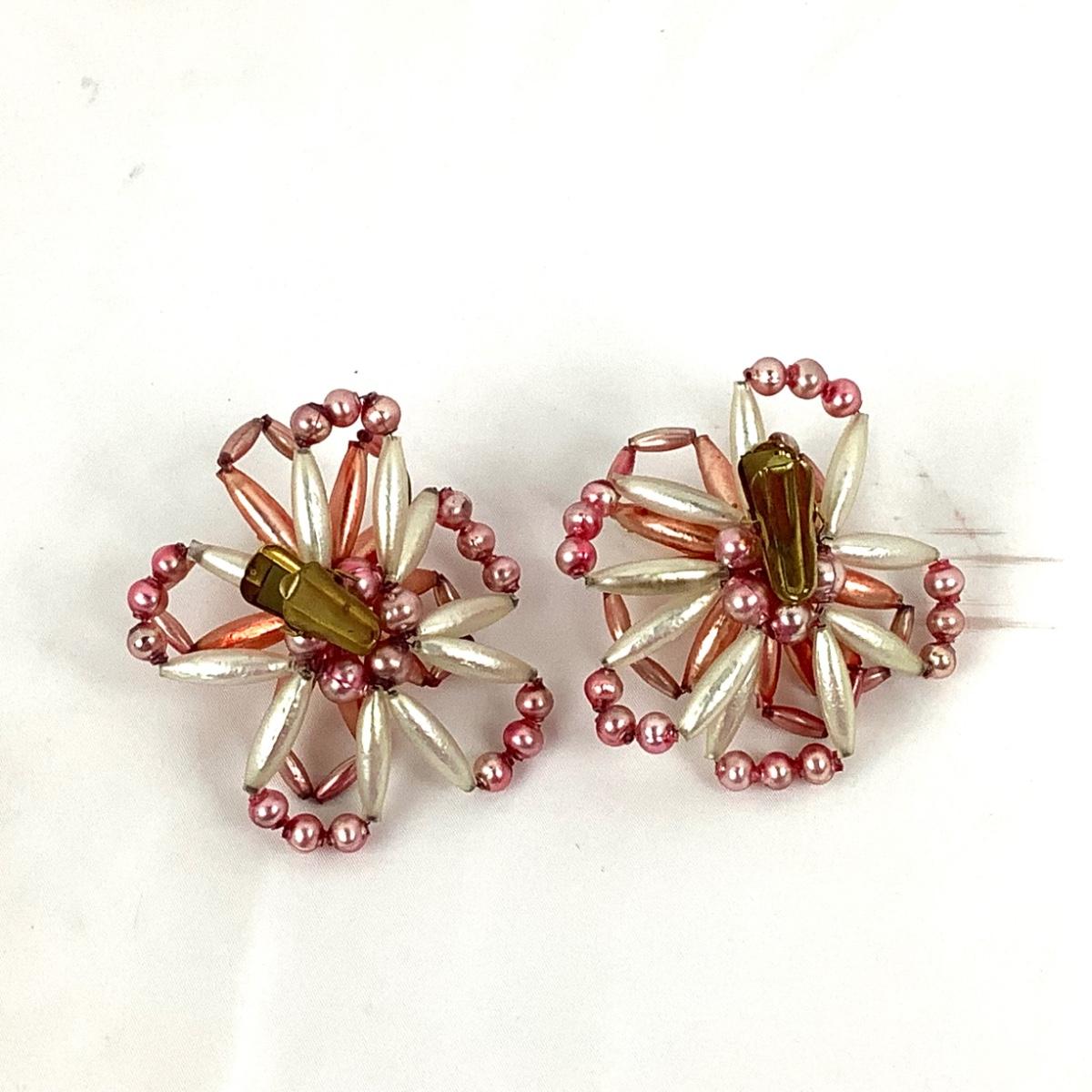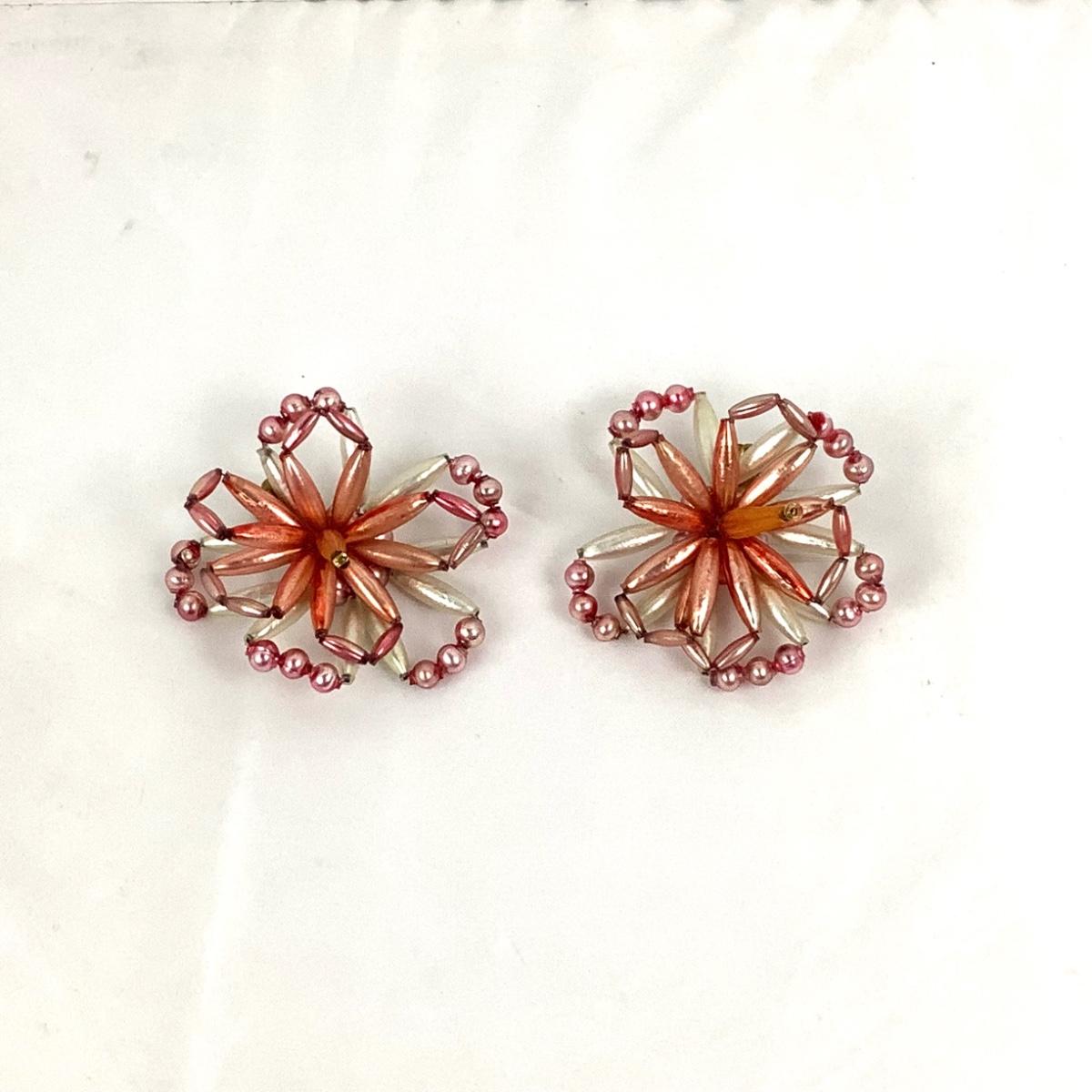 Lot 350 Pair of Vintage Beaded Flower Clip-On Ornaments