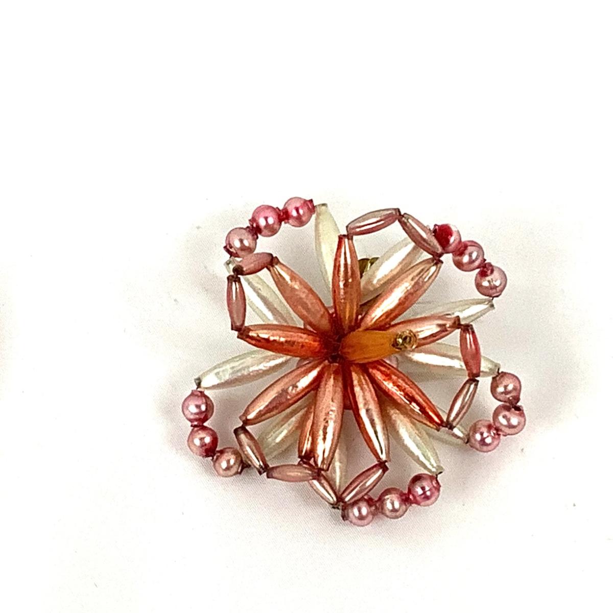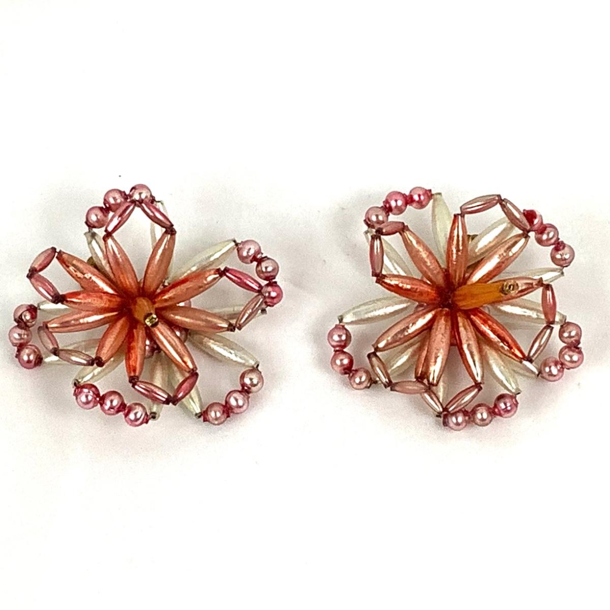 Pair of Vintage Beaded Flower Clip-On Ornaments