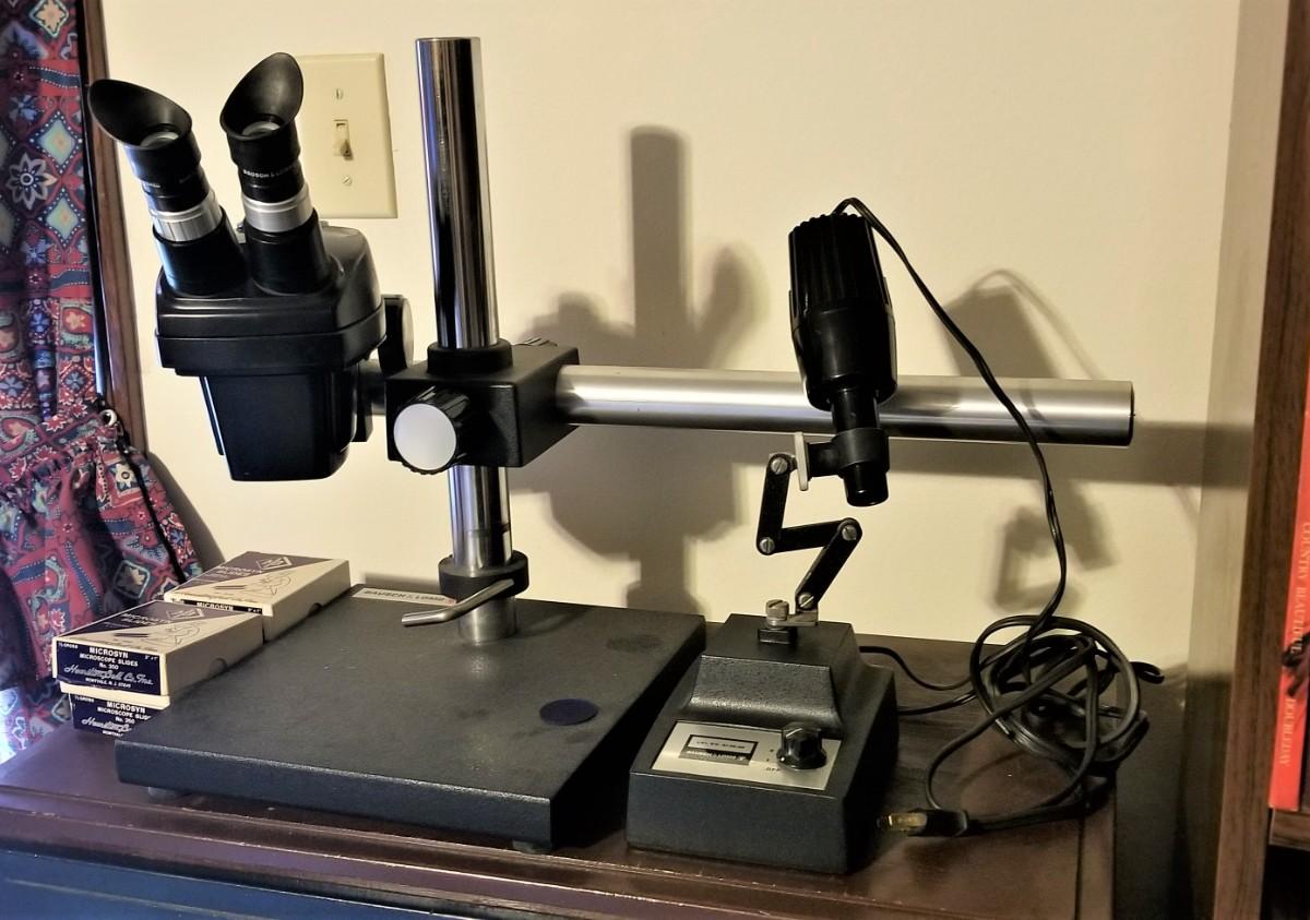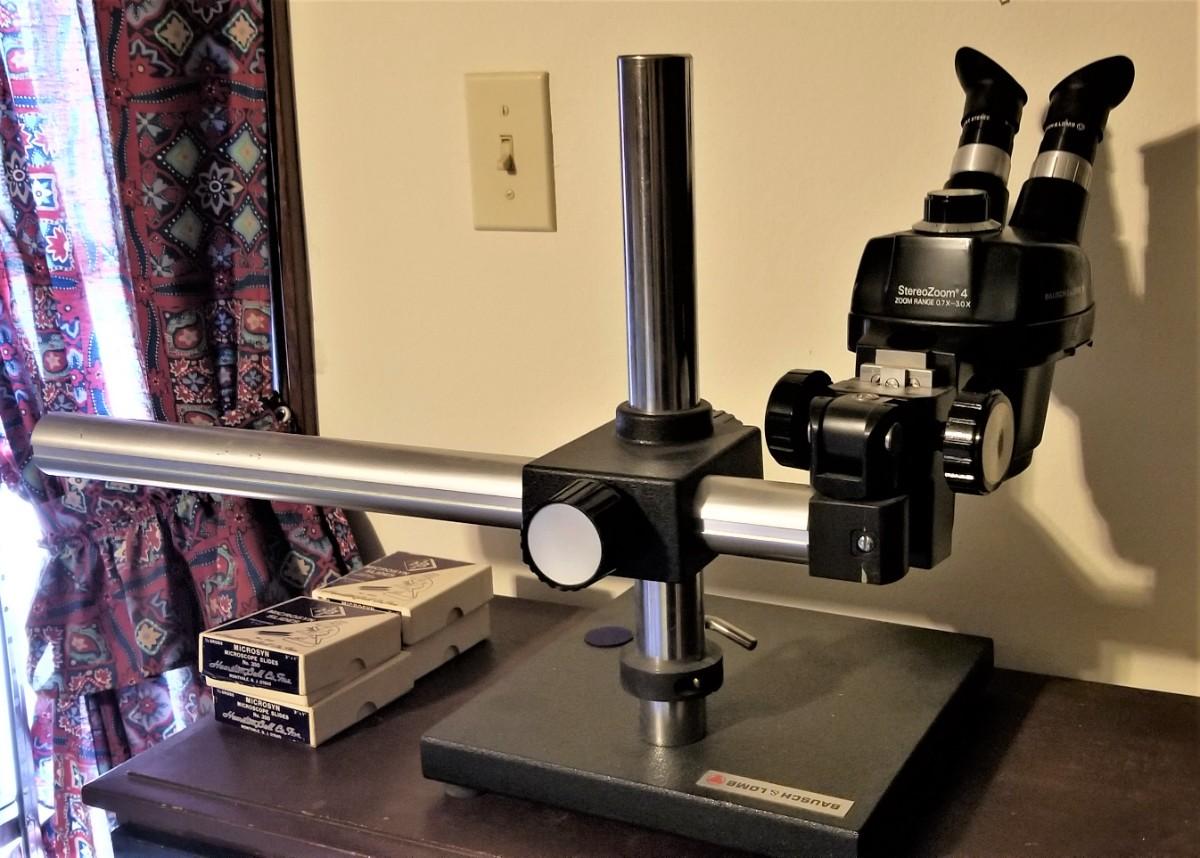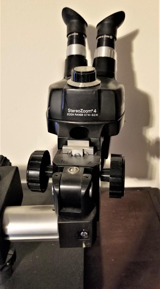 Great Vintage Bausch & Lomb Stereo Zoom 4 (07x - 3.0x) Microscope with light (catalog # 31-35-30) - light works. 22" across, 16" tall - heavy. You also get four boxes of slides that appear to be unused.