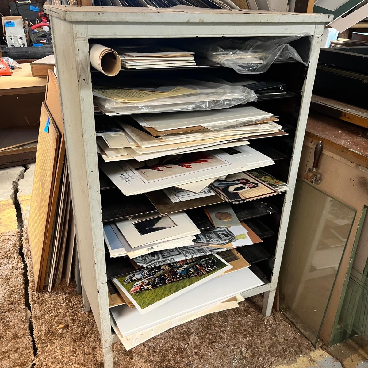 Great old cabinet to repurpose. Full of prints, various sizes & genres! A jackpot lot!
