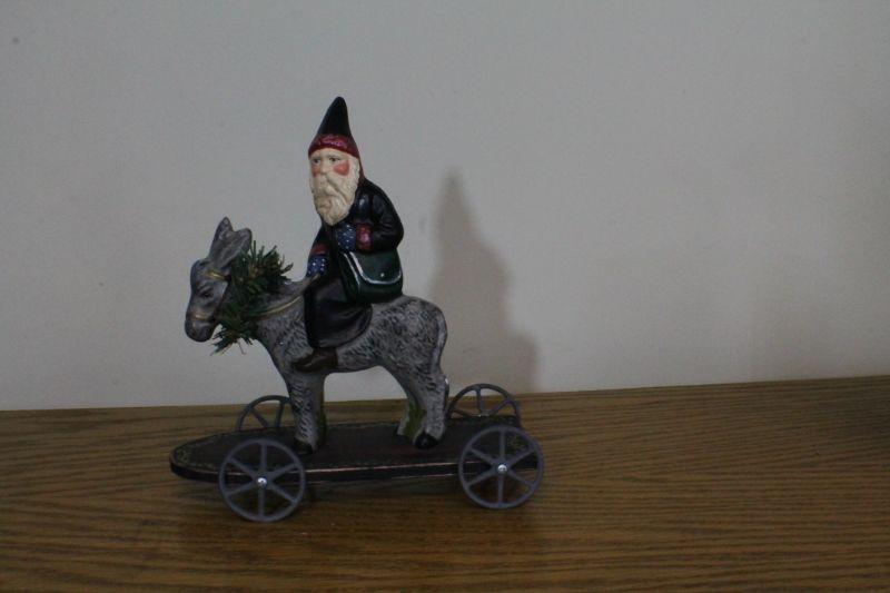 LOT #351: Santa Claus Riding Donkey w/ Wheels Home Holiday Deco