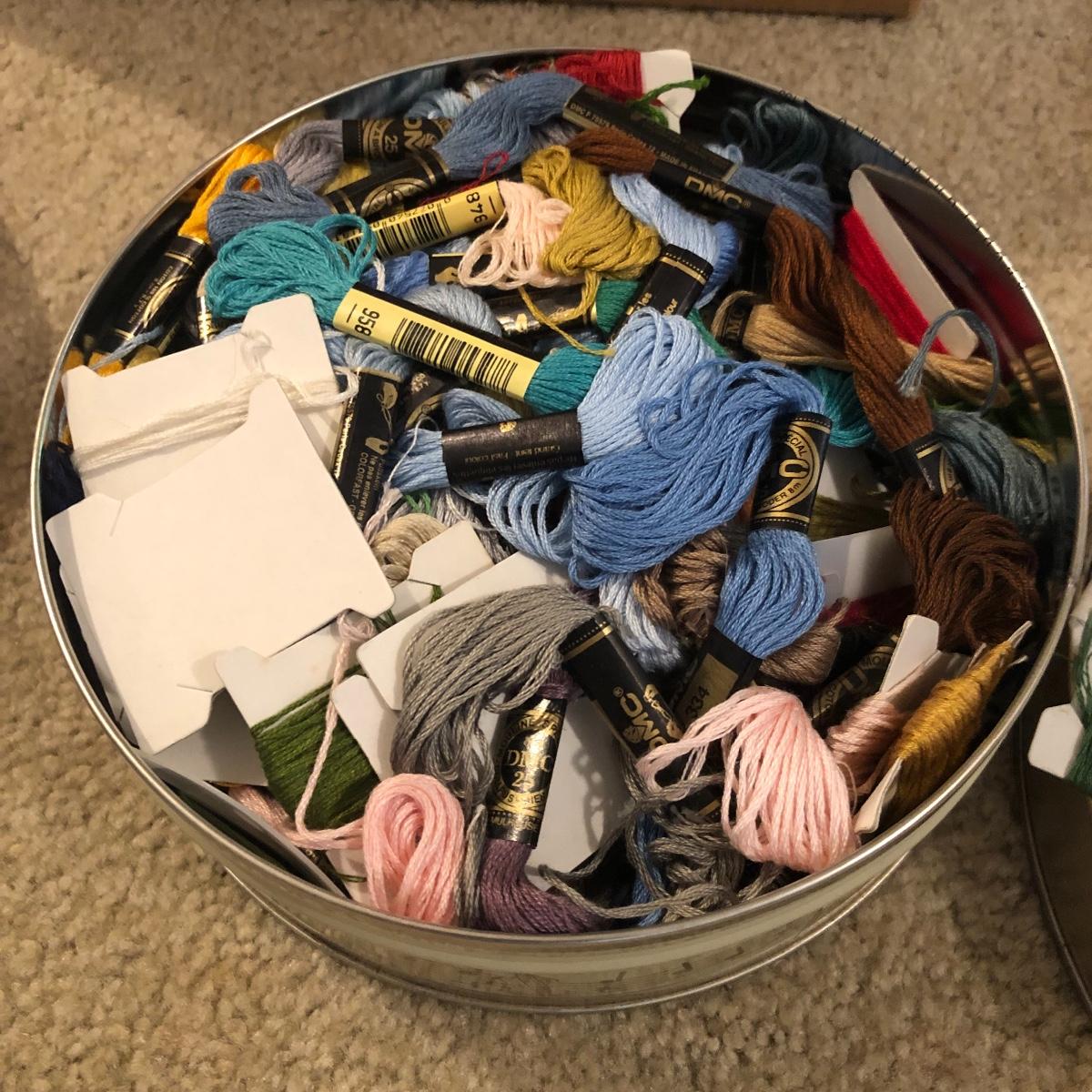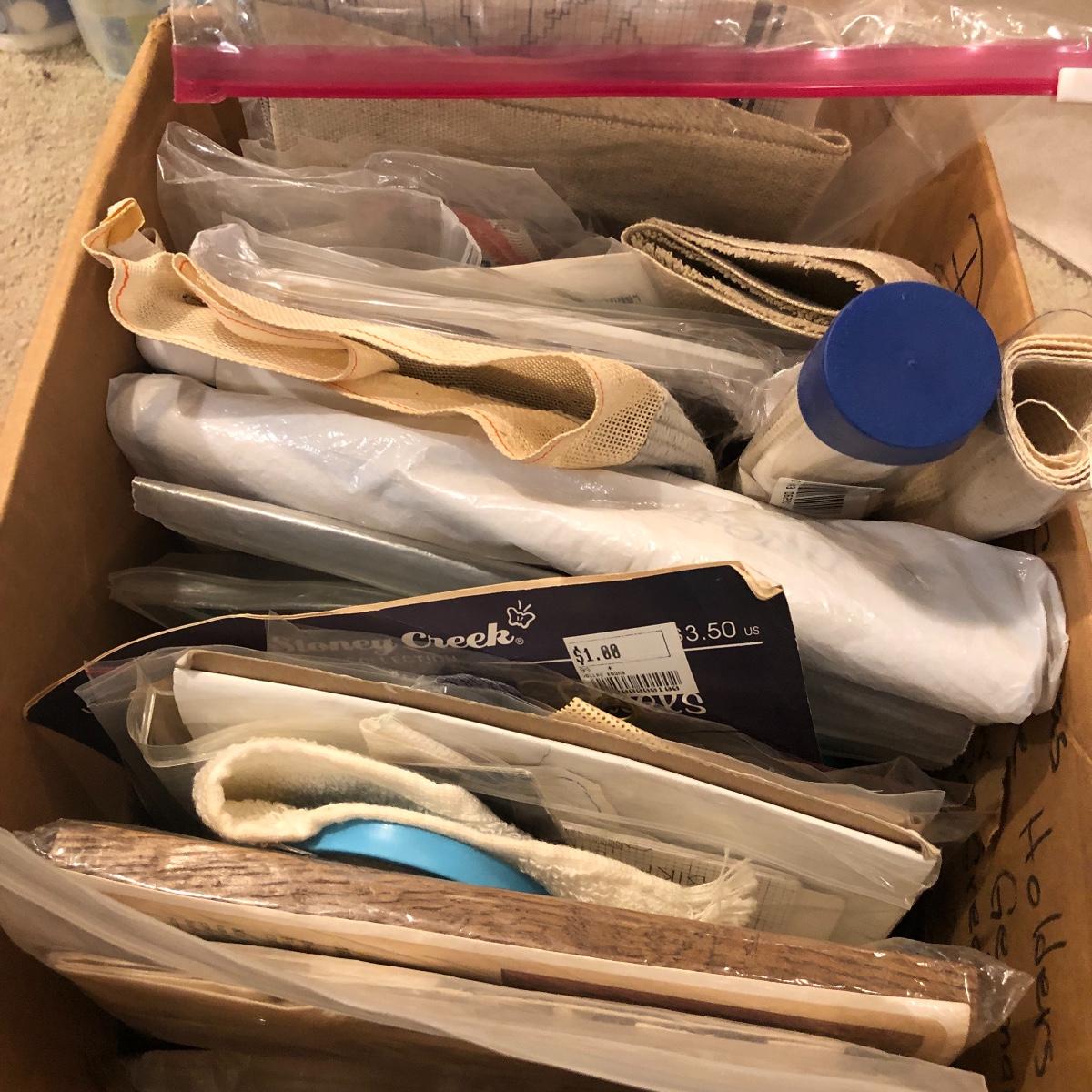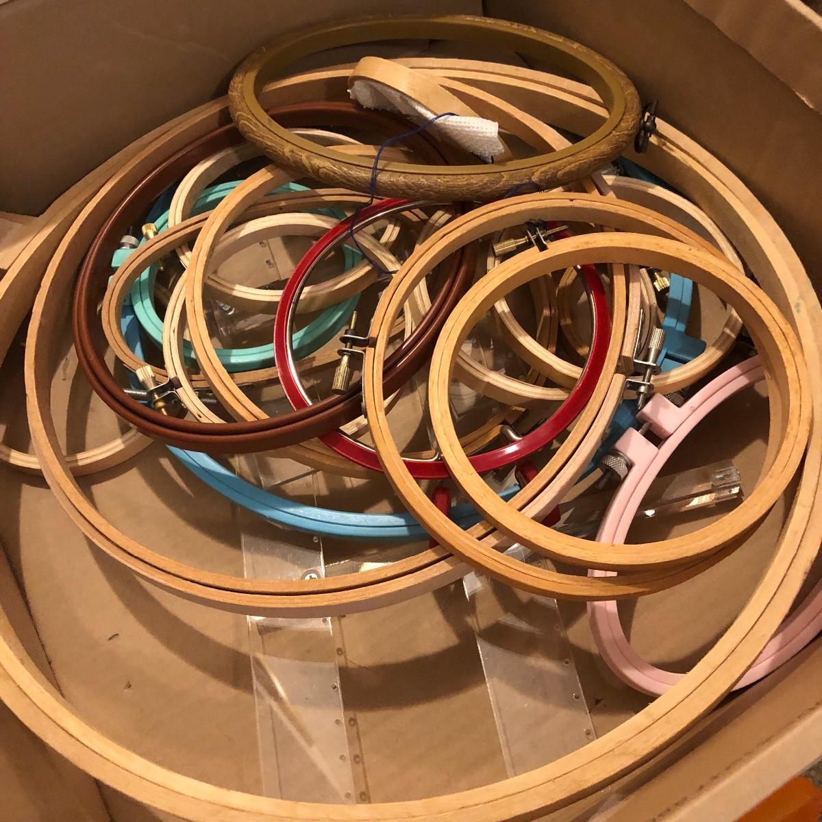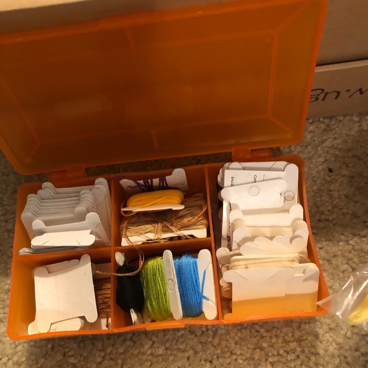 This lot includes all supplies needed to needle point! It includes hoops, thread (silk thread too) cross stitch kits, books and more! Local pick up only.