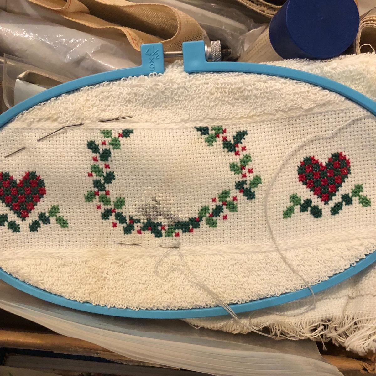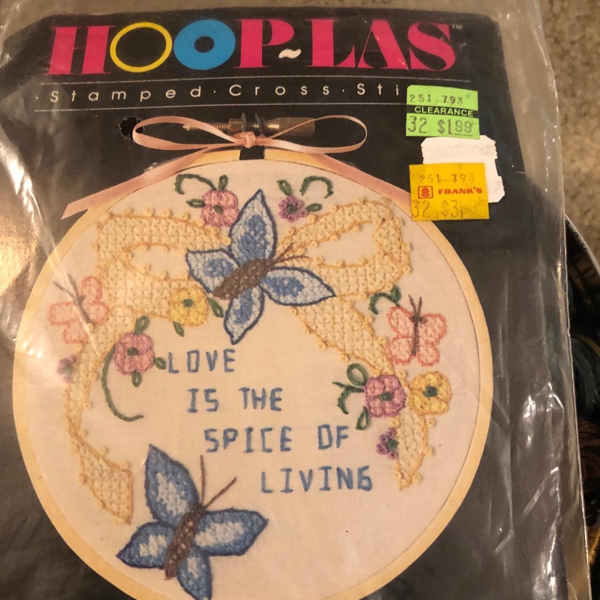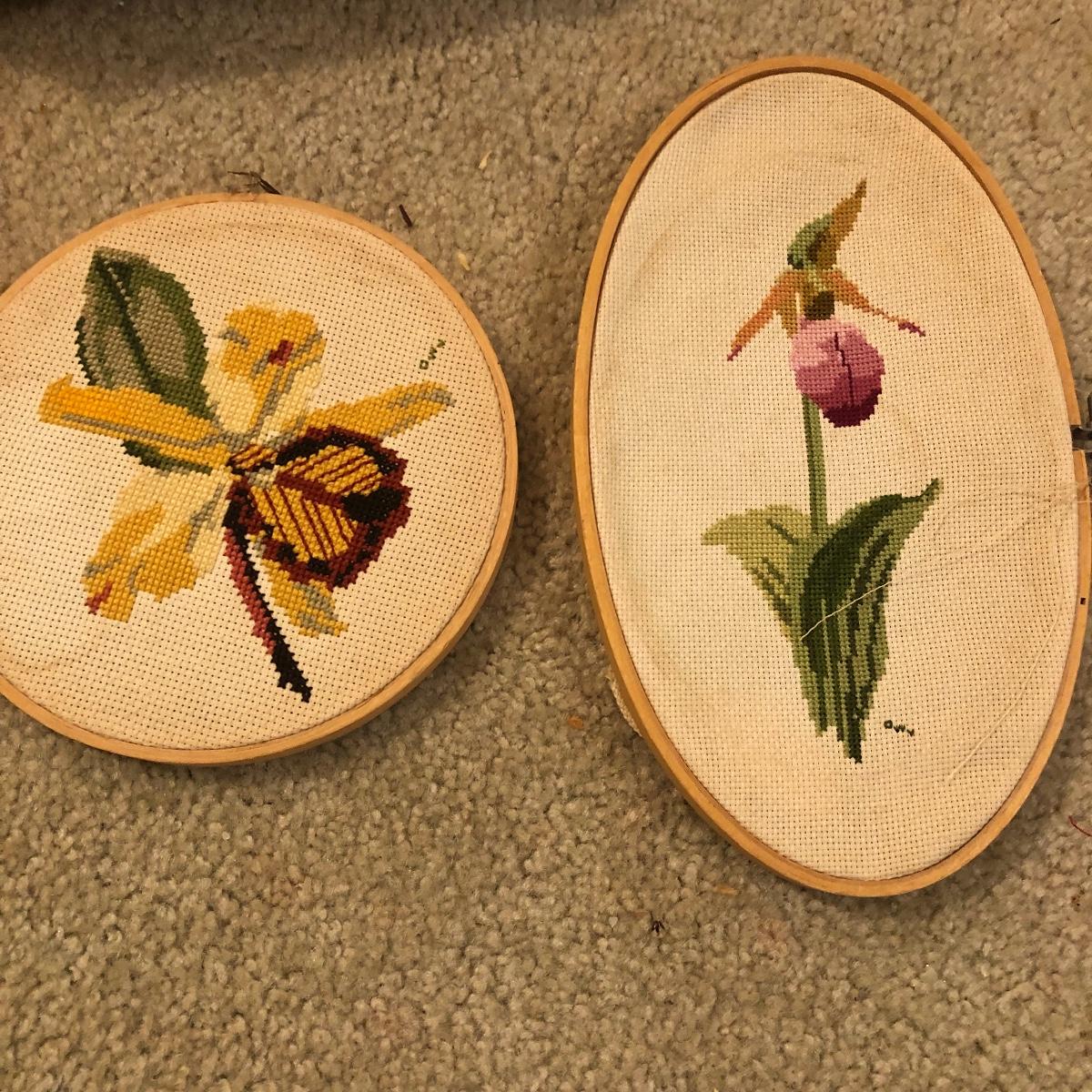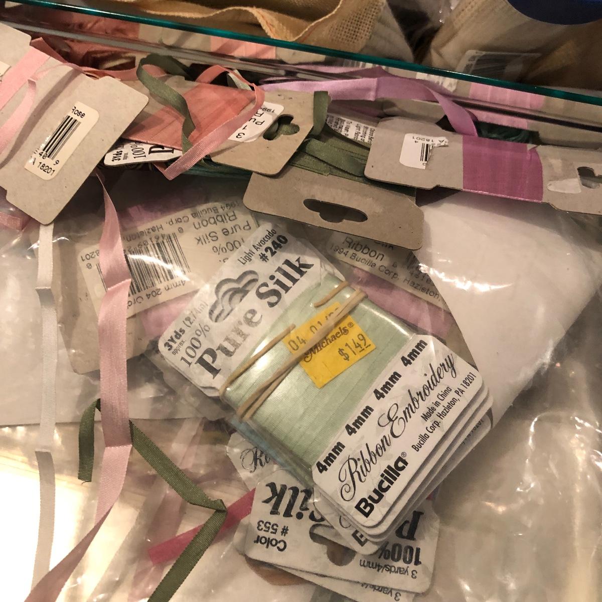 This lot includes all supplies needed to needle point! It includes hoops, thread (silk thread too) cross stitch kits, books and more! Local pick up only.
