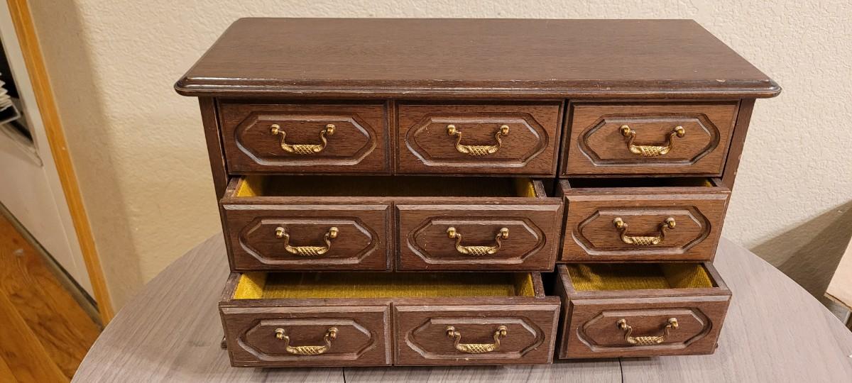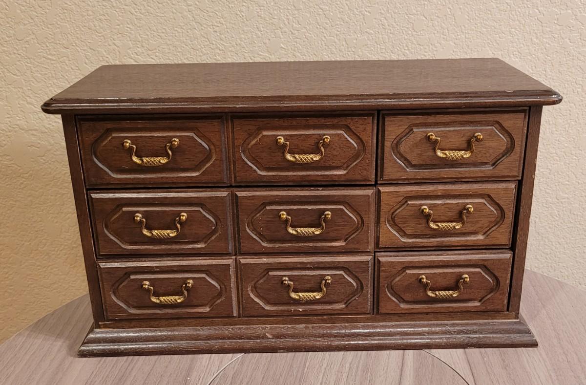 Nice condition for age and ready to add your personal Jewelry collection. 9" x 15" x 6".