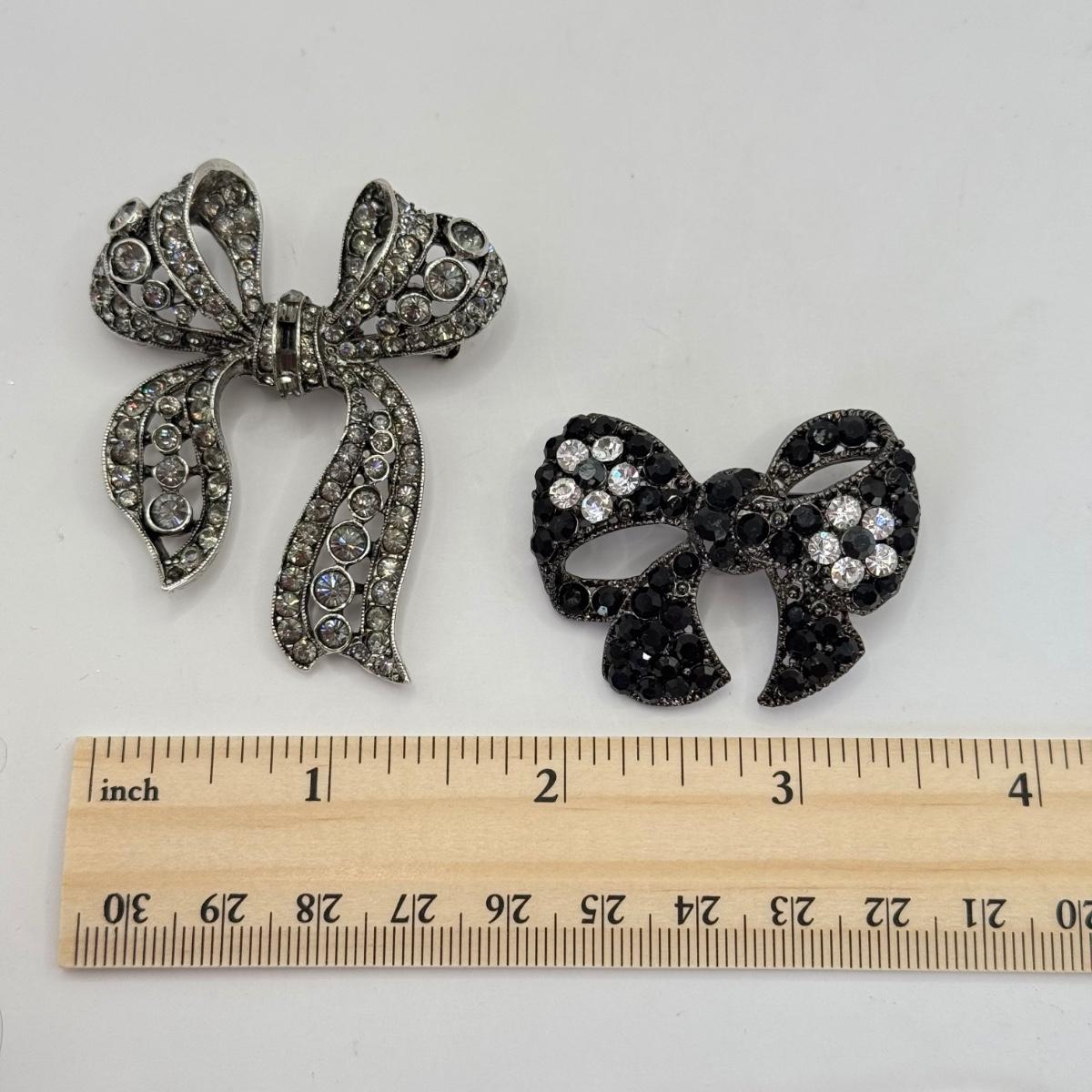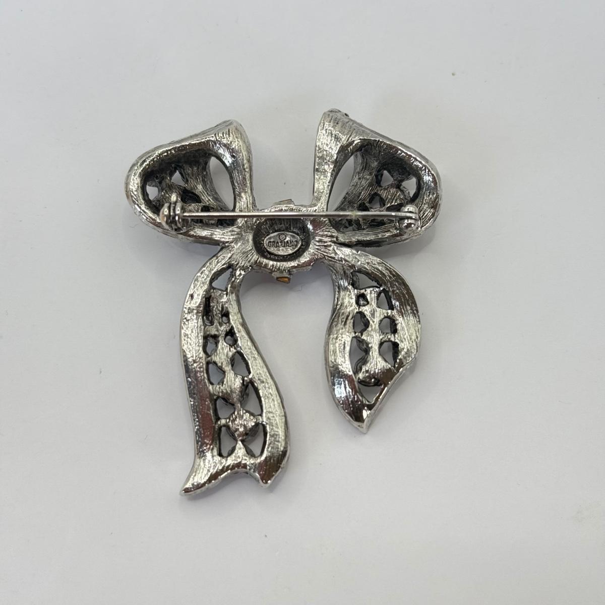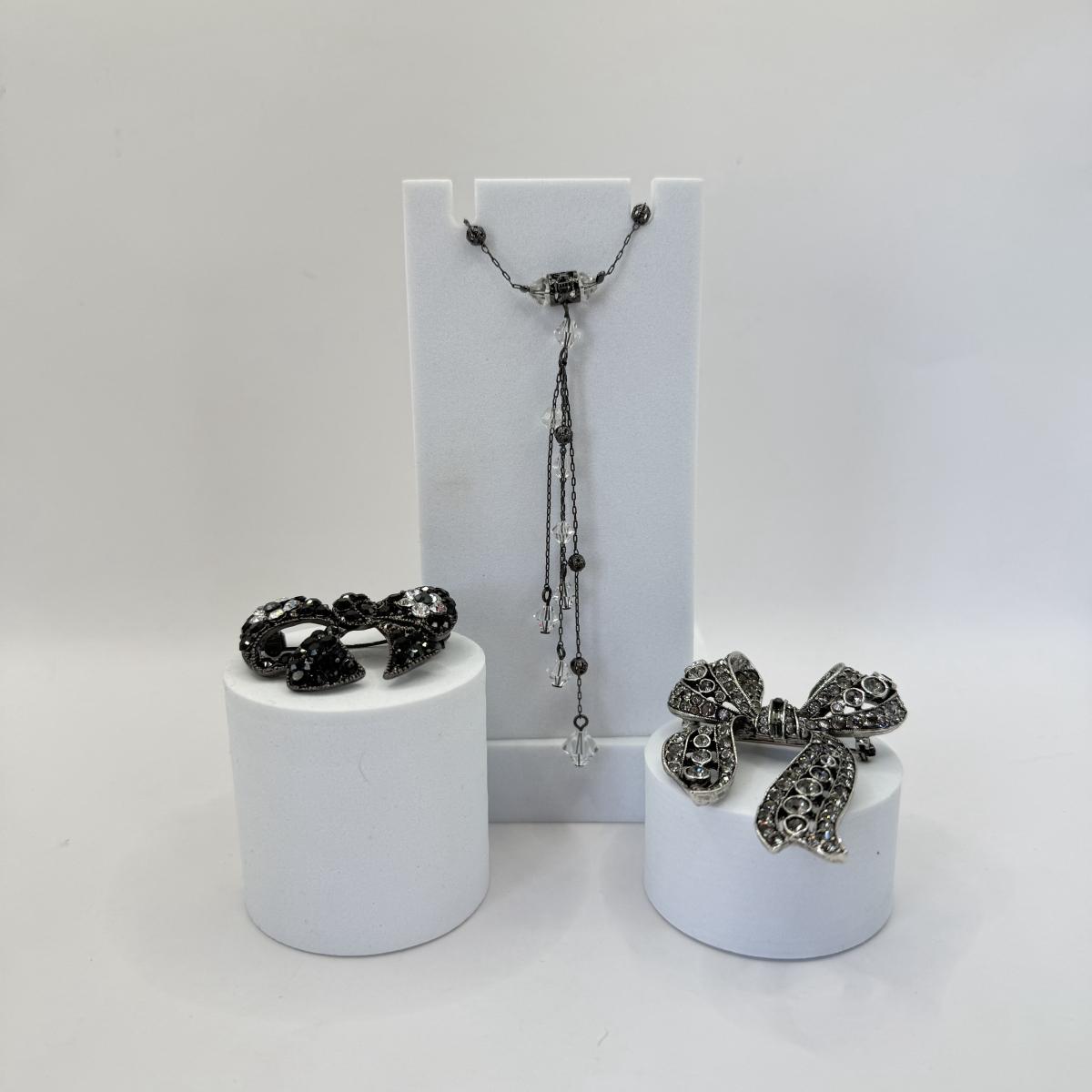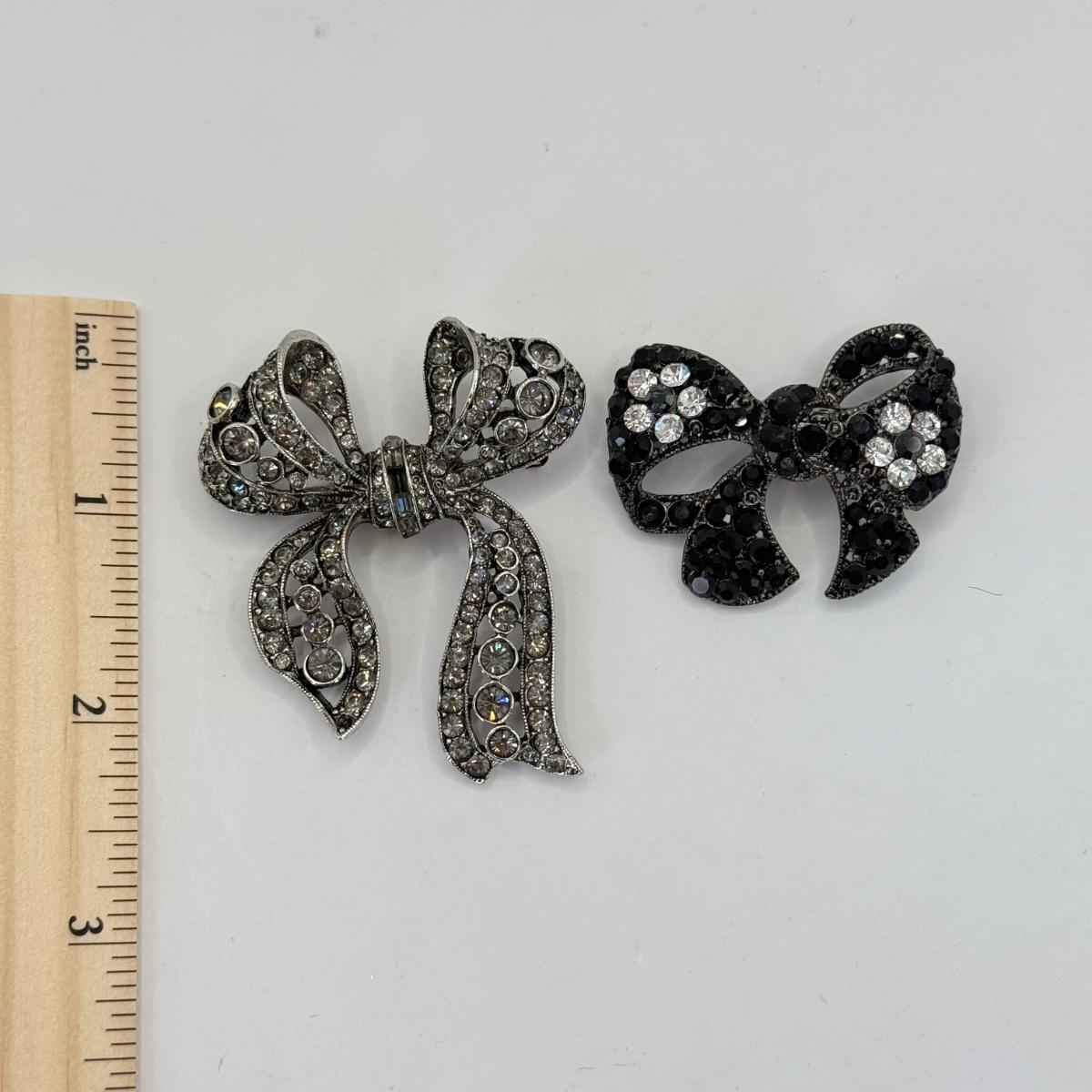 LOT 351J: 17.5” Vintage Crystal Beaded Necklace w/ 2 Bow Pins: Grazian & Unmarked