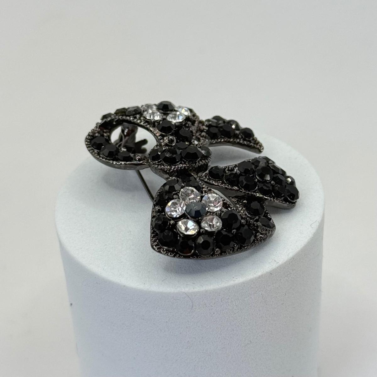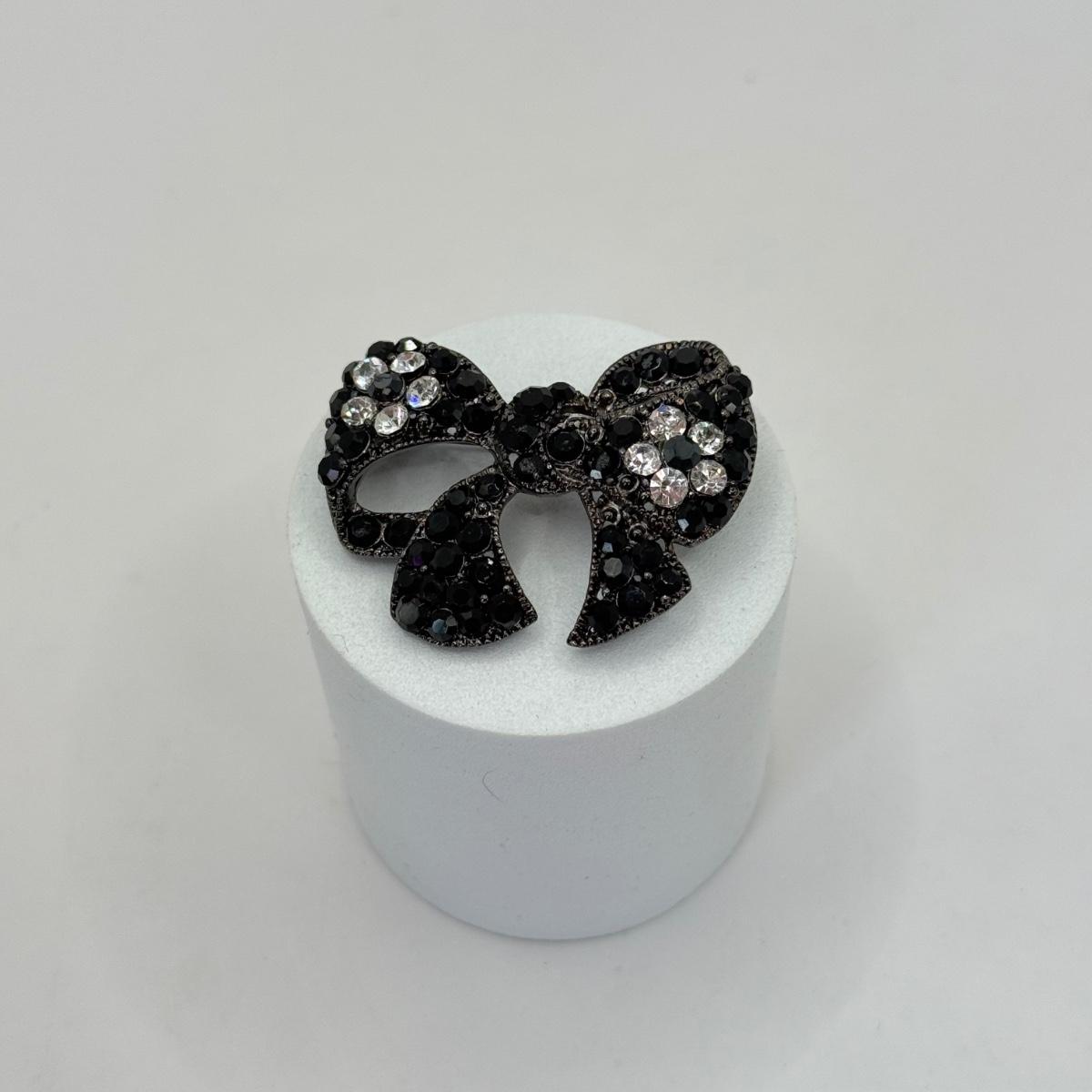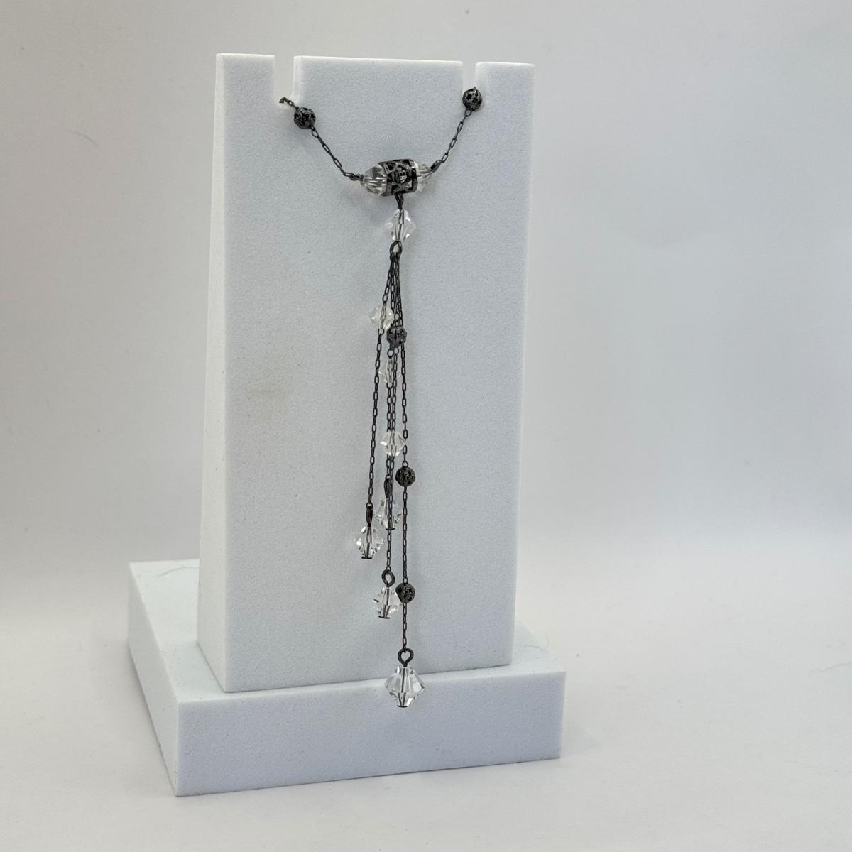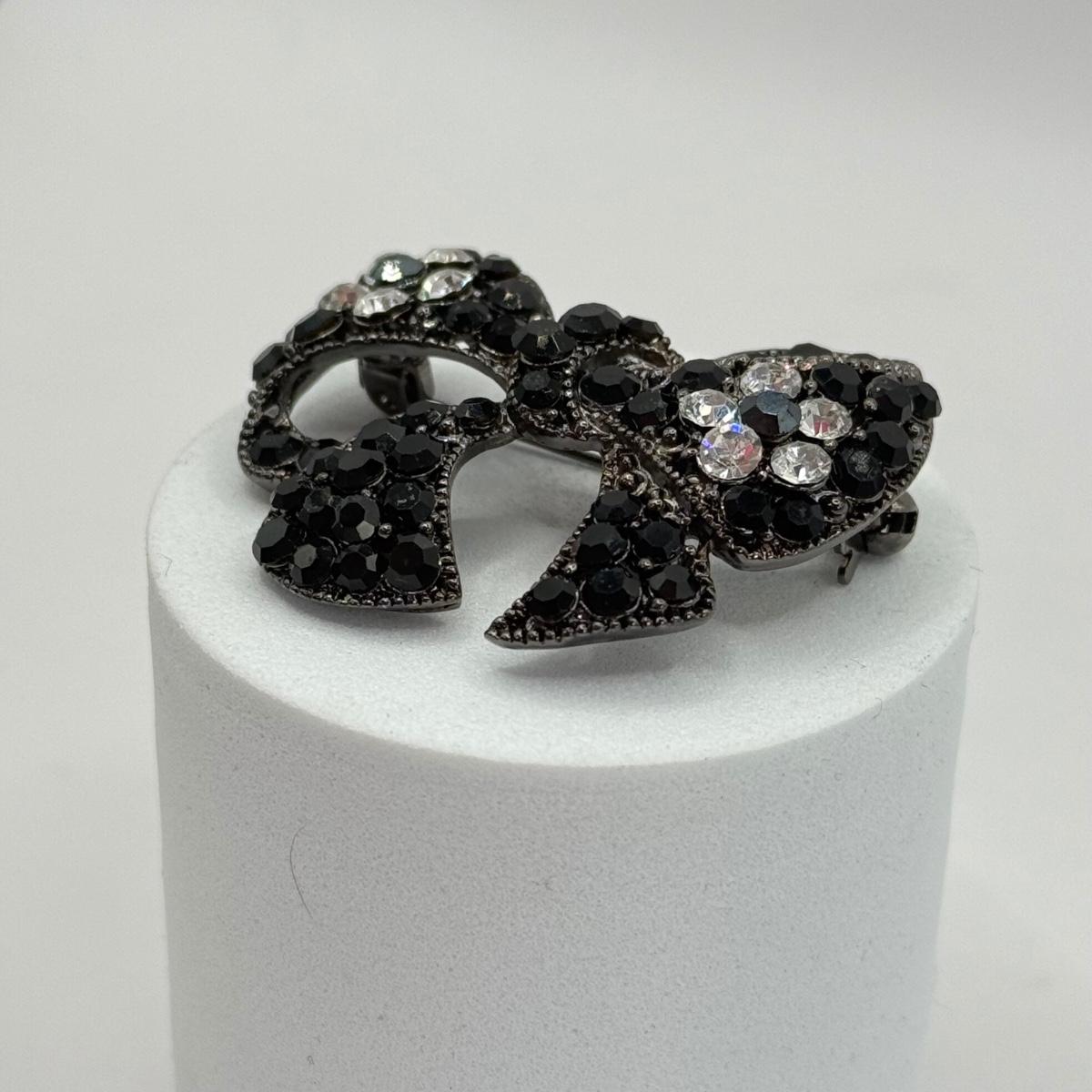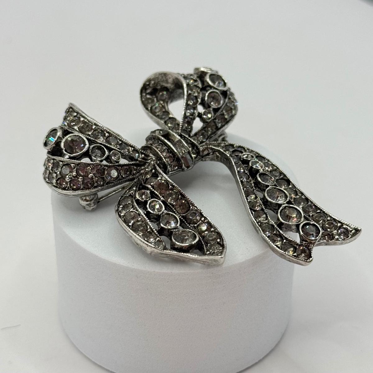 LOT 351J: 17.5” Vintage Crystal Beaded Necklace w/ 2 Bow Pins: Grazian & Unmarked