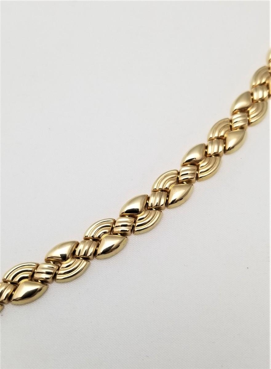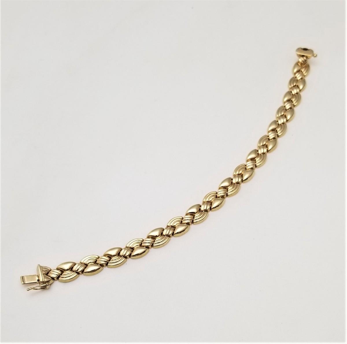 Another supple 14kt yellow gold (marked and tested) bracelet - made in Italy. Measures 7" long. The opening bid is the scrap price of the gold - that is the lowest price we will accept for this bracelet. Gently used condition.