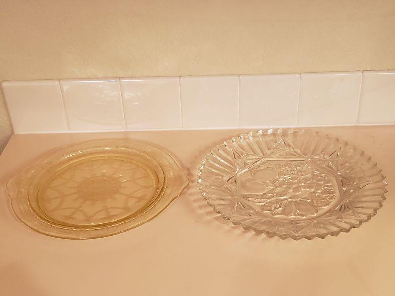 Lot 352: Yellow Depression Glass and Clear Glass Platters