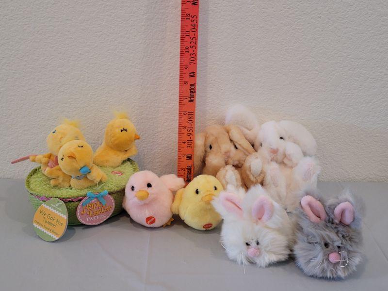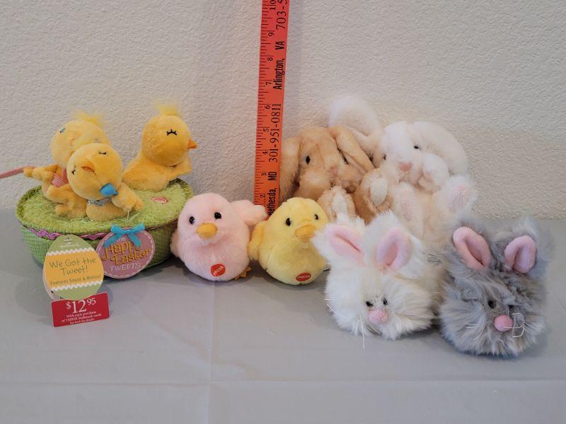 Lot 352: New Animated Hallmark Singing Chicks, (2) Musical Bunnies, (2) Bunny Plush Balls and (2) Douglas Bunnies