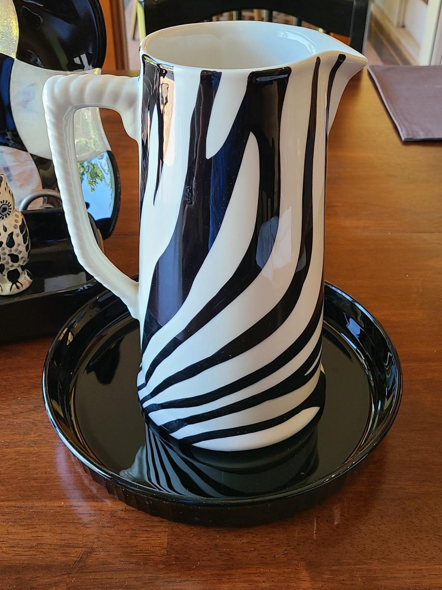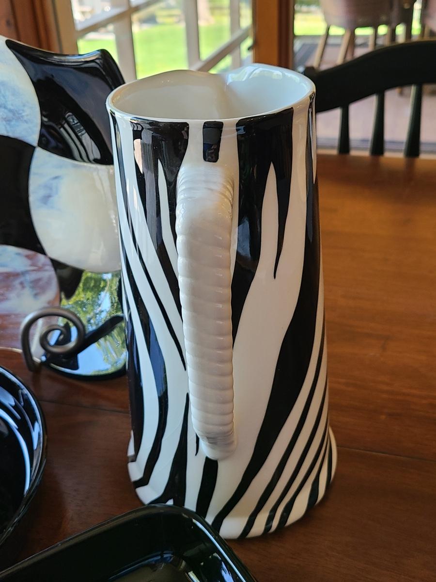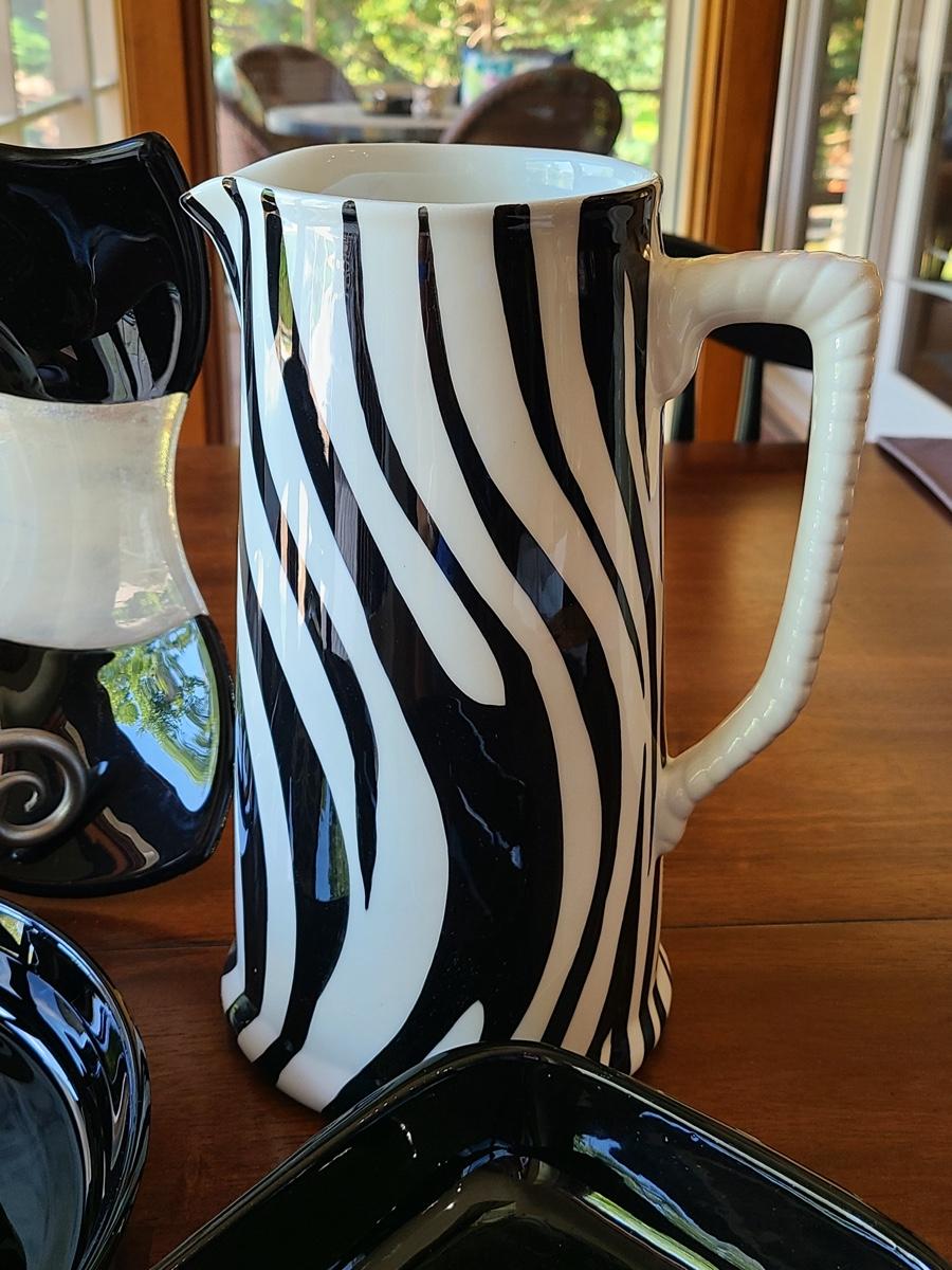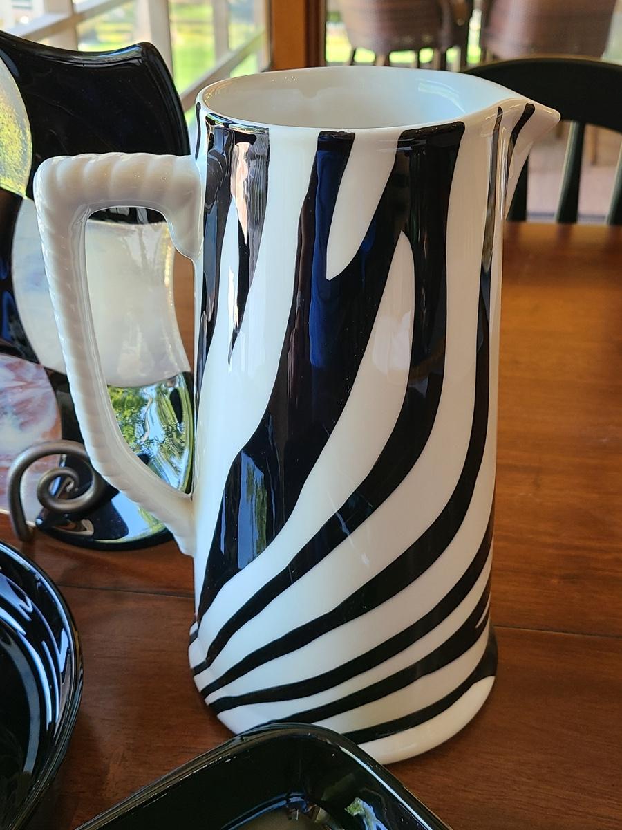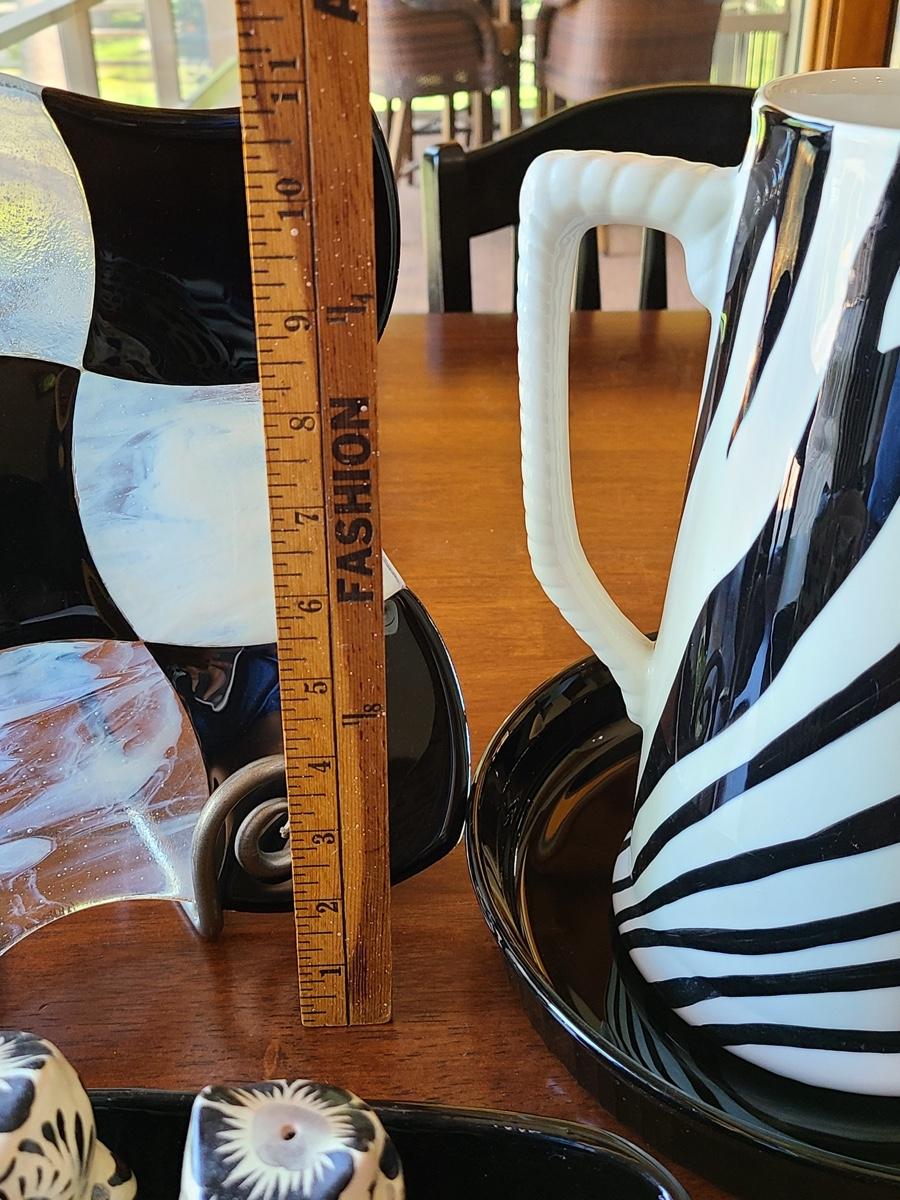 This lot includes a zebra style pitcher that can be functional or used as vase for decor, an art glass checkers plate that is functional for serving appetizers on as well, and Corning Ware black pie server, and vintage Haeger black planter, or casserole. Please see all pictures as they are the best representation of the items. The pictures show condition, measurements if taken, and what is included in the lot. Due to the large amount that we photograph and the time frame, we are not always able to take measurements. All items unless noted, are pre-owned and have been used. If you purchased furniture, you must bring help. We do not allow one person to carry large furniture out on their own. Bring help, tools and a truck for the safety of our clients homes, and your personal safety. Company policy. Thank you.