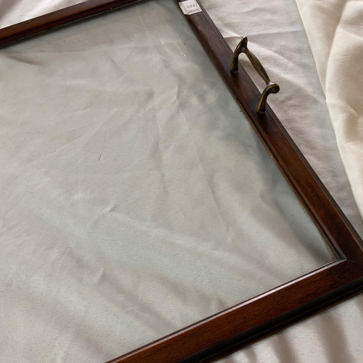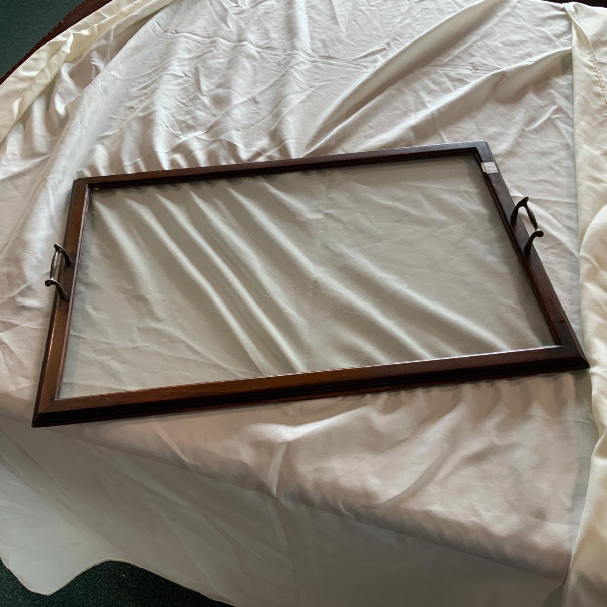 Handled Glass Tray. Perfect for serving mom breakfast in bed!! //::\\ Please see photos for details and condition. No attempt has been made to hide any imperfections. All items listed in this auction are warehouse items, and need to be cleaned. A majority of the items need restoration as well. All items are sold AS IS and WITHOUT GUARANTEE. If you are uncertain about an item, DO NOT BID. Due to the nature of this online auction in-person inspection is HIGHLY recommended. All Sales are FINAL. Pick Up Times are FIRM. Please confirm with your own schedule that you can pick up in the scheduled times listed in the Terms and Conditions. Any questions please message the auctioneer. DO NOT Contact The Harp Gallery.