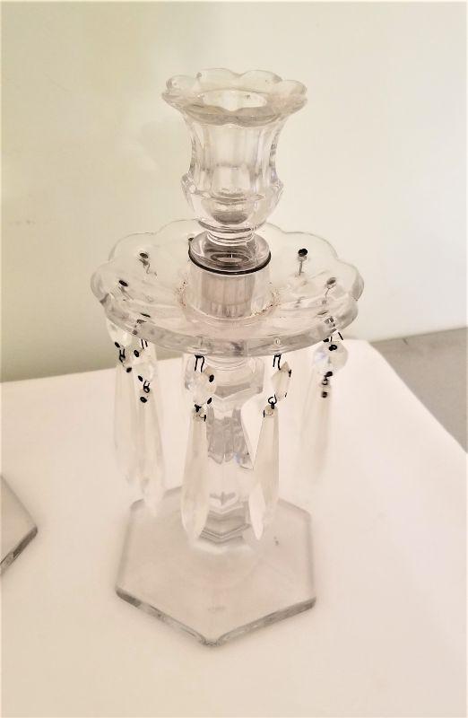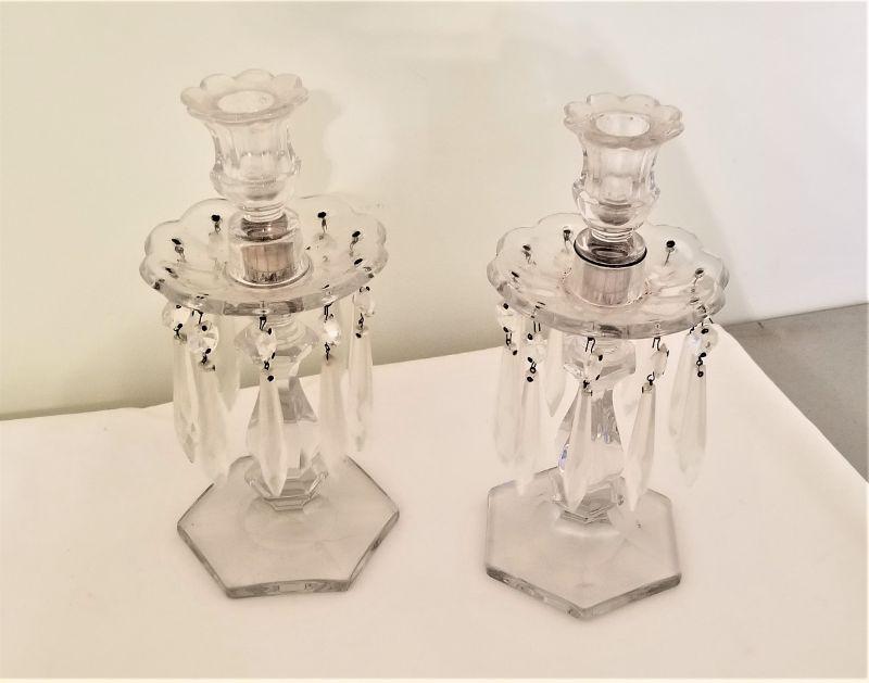 Lot #352 Pair of Glass Candlesticks with Prisms