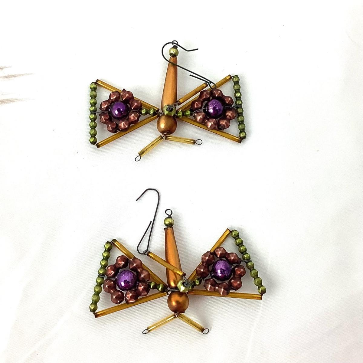 Pair of Vintage Purple/Gold Glass Beaded Butterfly