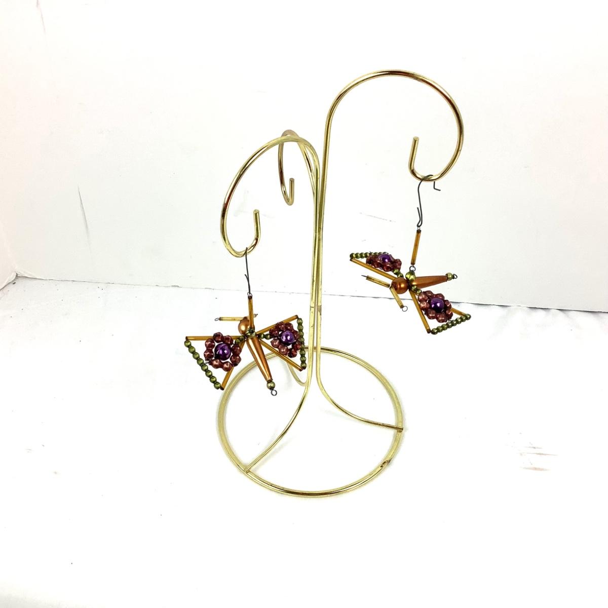 Lot 352 Pair of Vintage Purple/Gold Glass Beaded Butterfly