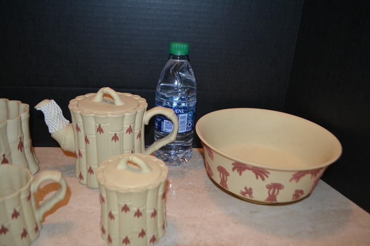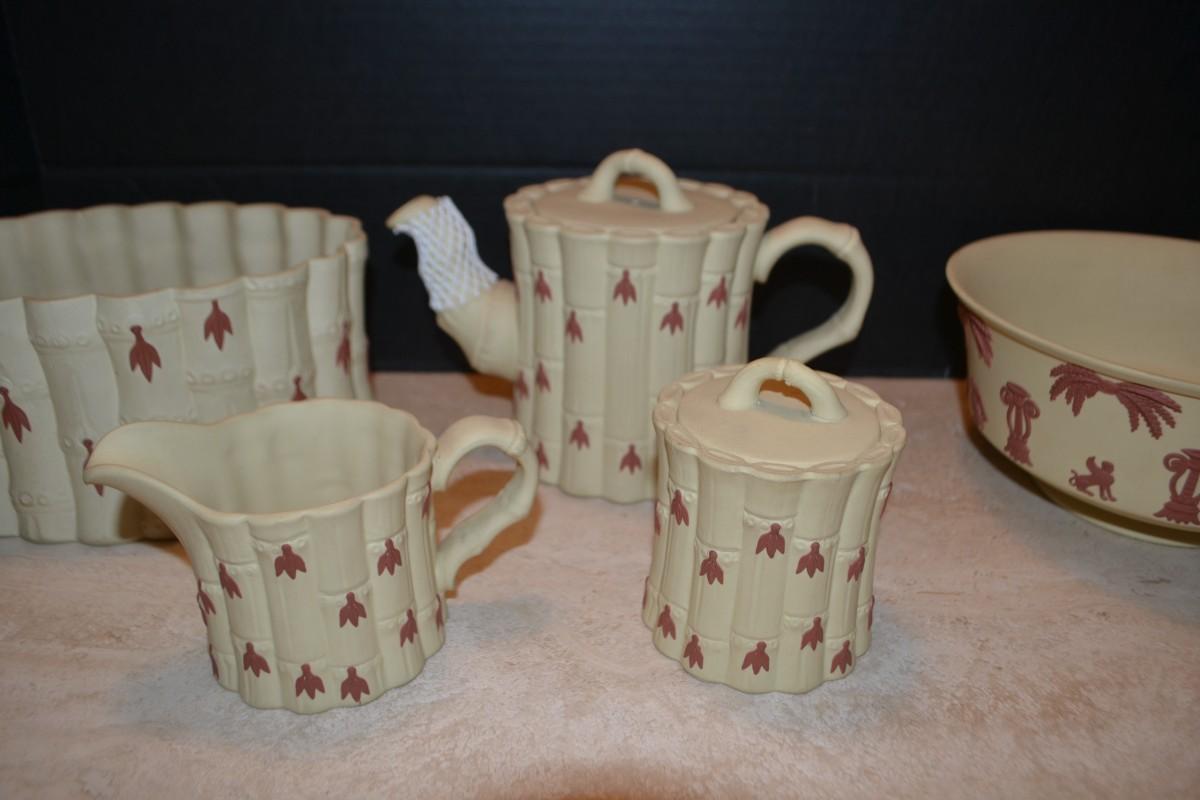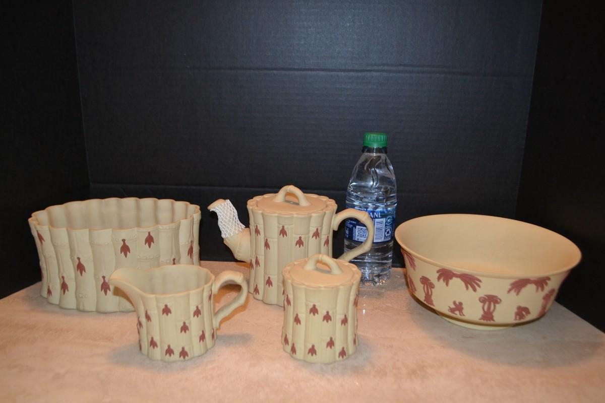 LOT 353 WEDGWOOD BAMBOO SET TERACOTTA ON PRIMROSE JASPERWARE