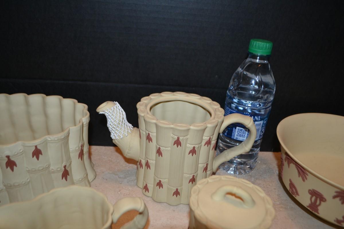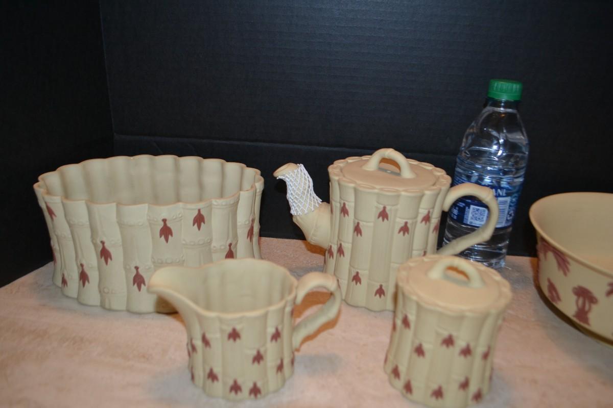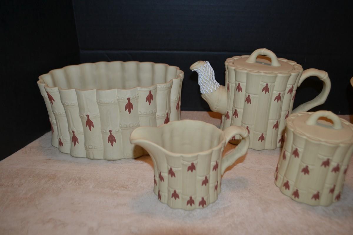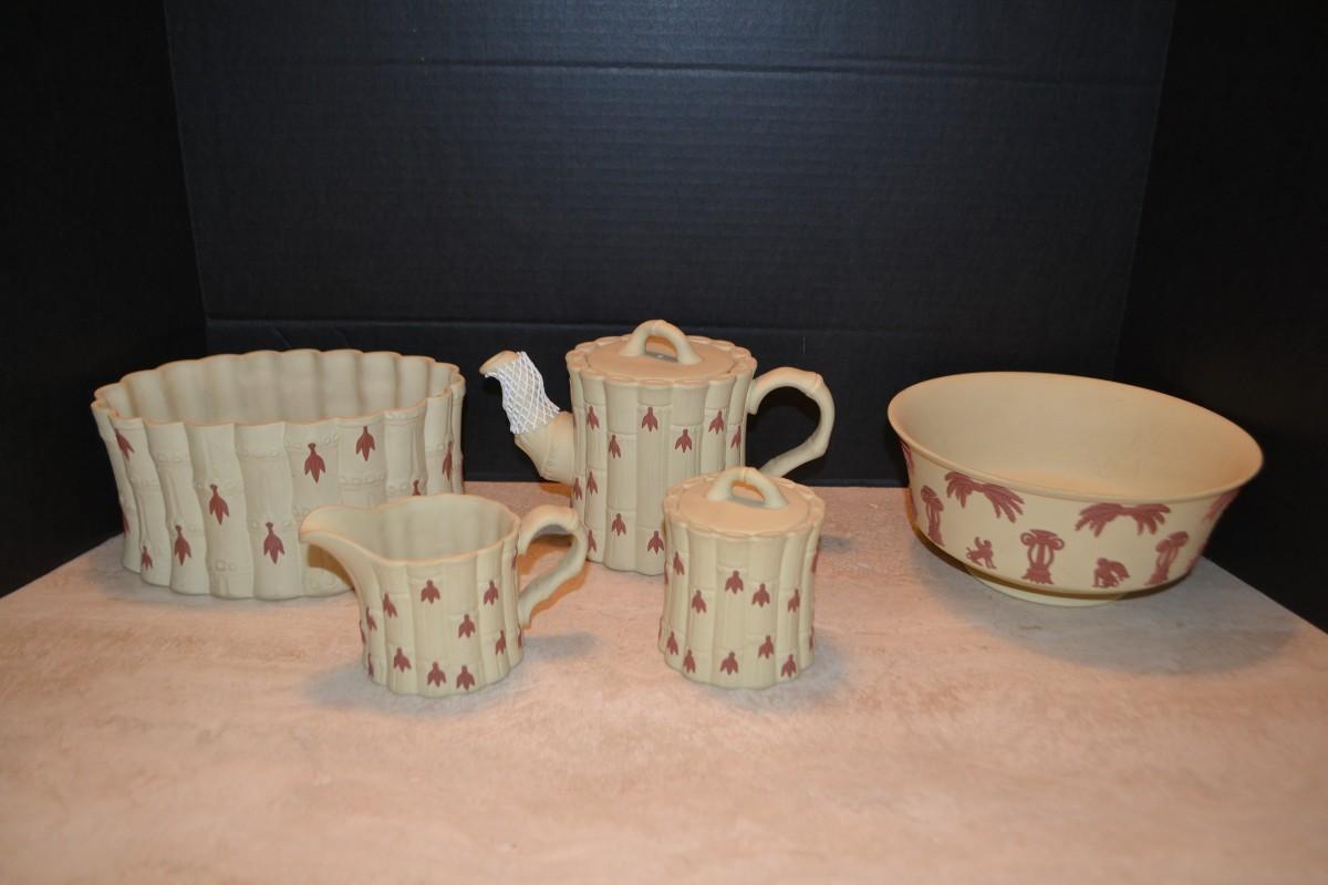 LOT 353 WEDGWOOD BAMBOO SET TERACOTTA ON PRIMROSE JASPERWARE