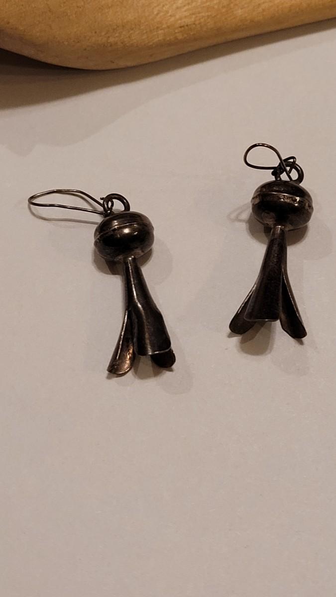 Lot 353: Unmarked Sterling Squash Blossom Earrings