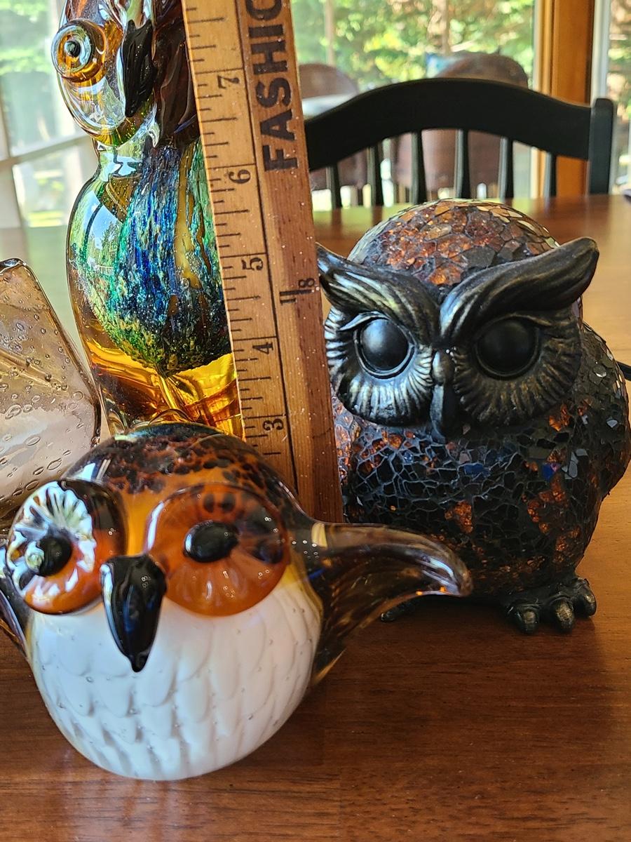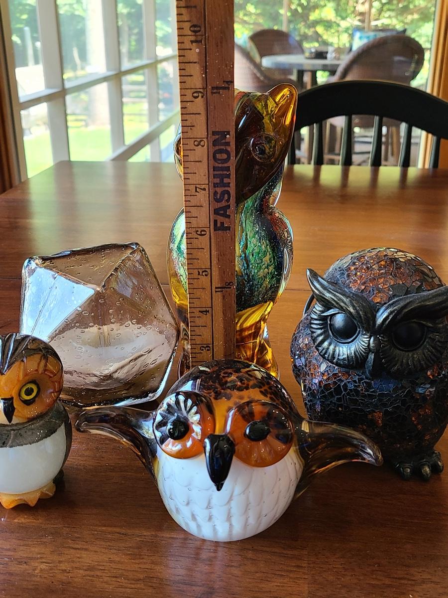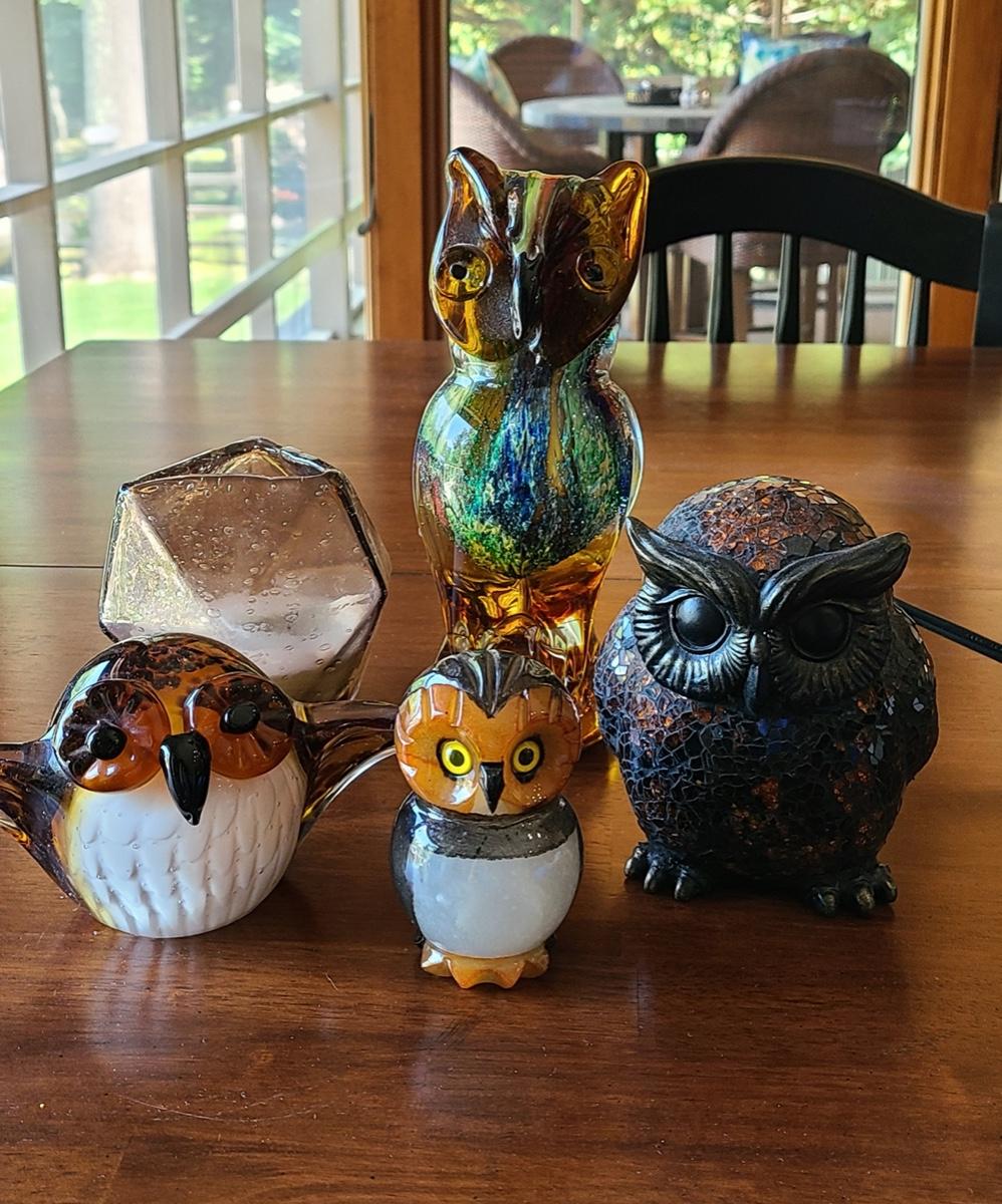 Collectible owls for home decor including a small "light-up" owl fairy lamp, and candle vase. Please see all pictures as they are the best representation of the items. The pictures show condition, measurements if taken, and what is included in the lot. Due to the large amount that we photograph and the time frame, we are not always able to take measurements. All items unless noted, are pre-owned and have been used. If you purchased furniture, you must bring help. We do not allow one person to carry large furniture out on their own. Bring help, tools and a truck for the safety of our clients homes, and your personal safety. Company policy. Thank you.