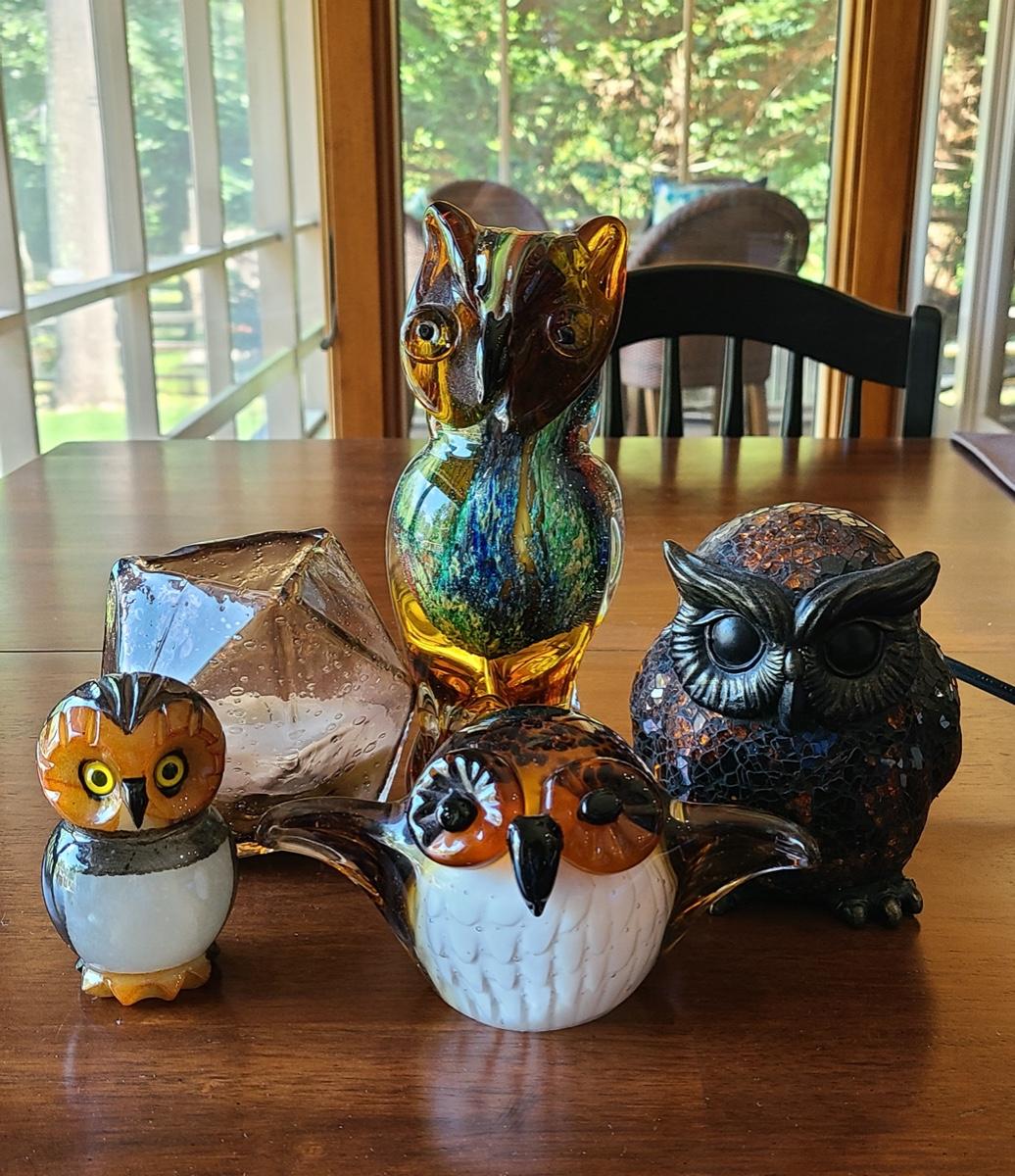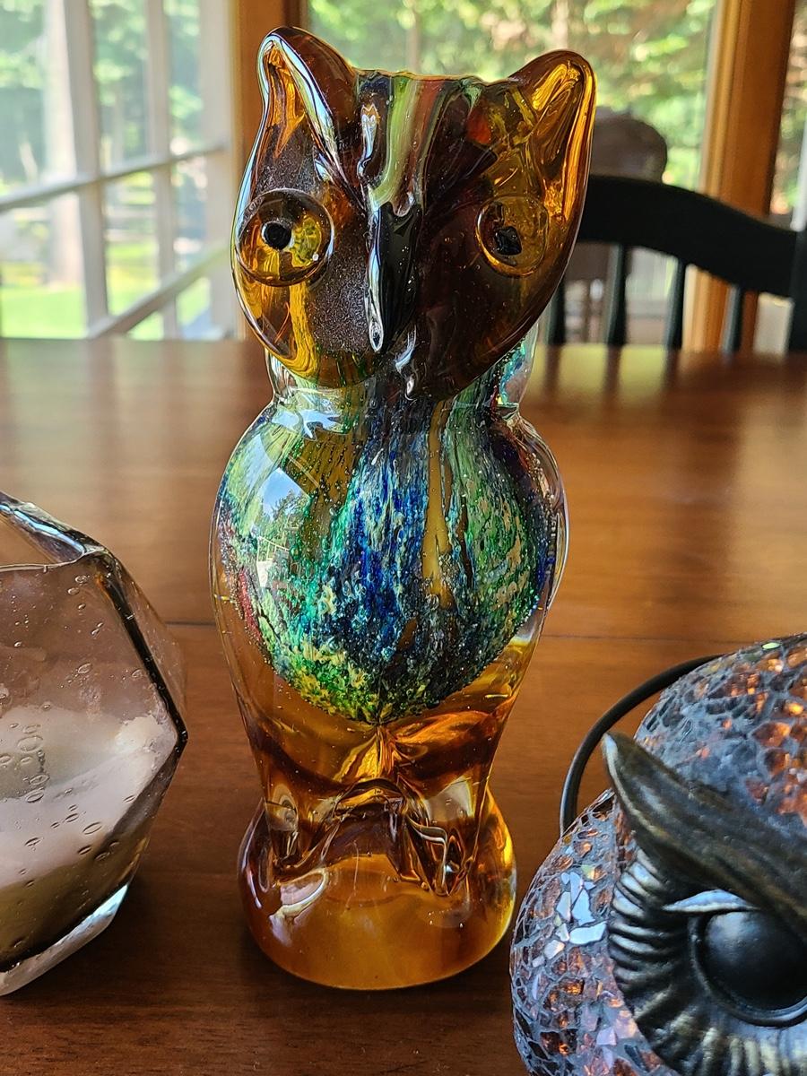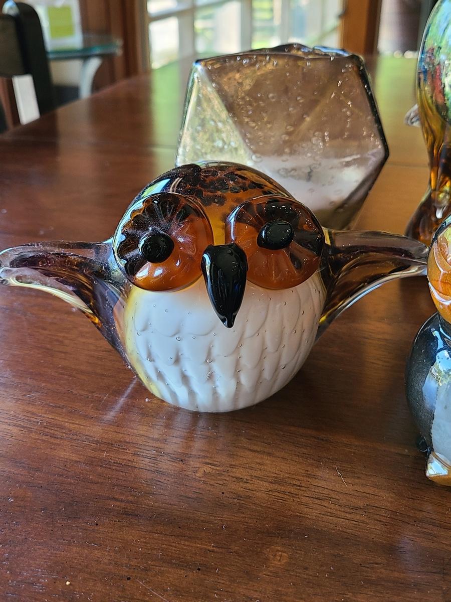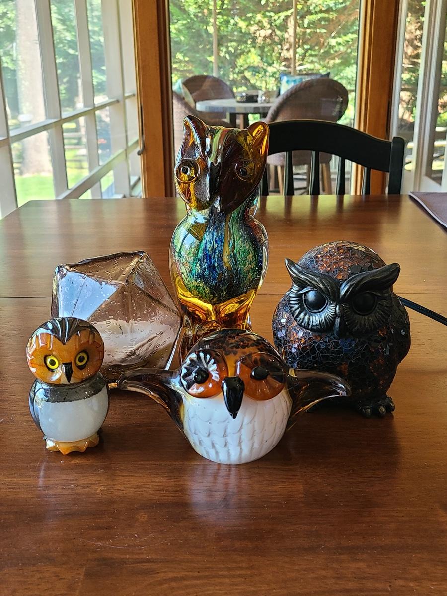 Lot 353: Art Glass Owls, Owl Fairy Lamp, and More