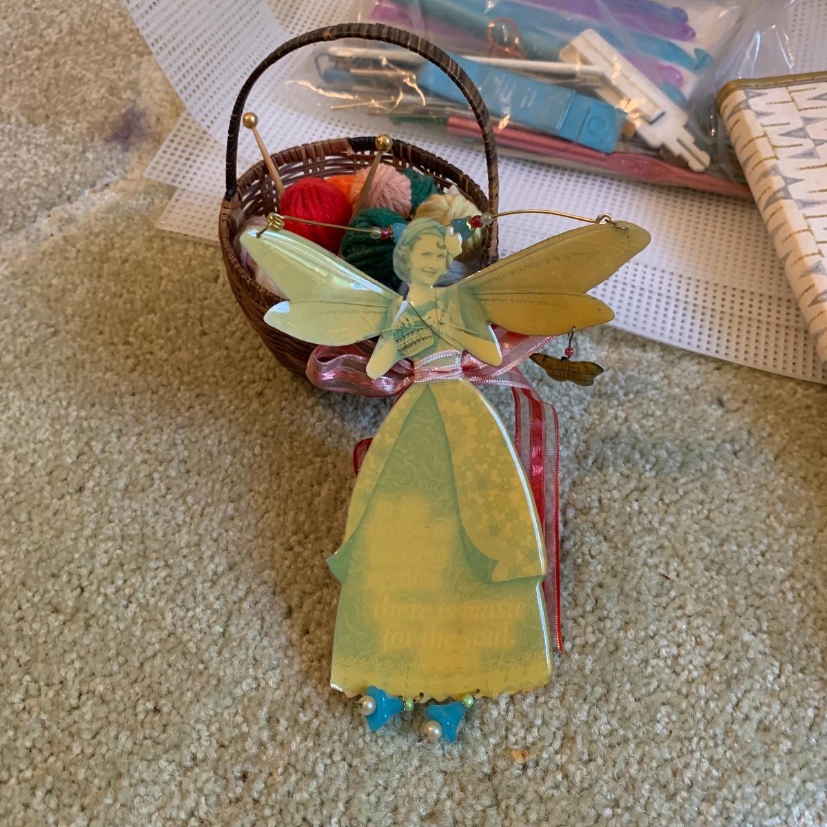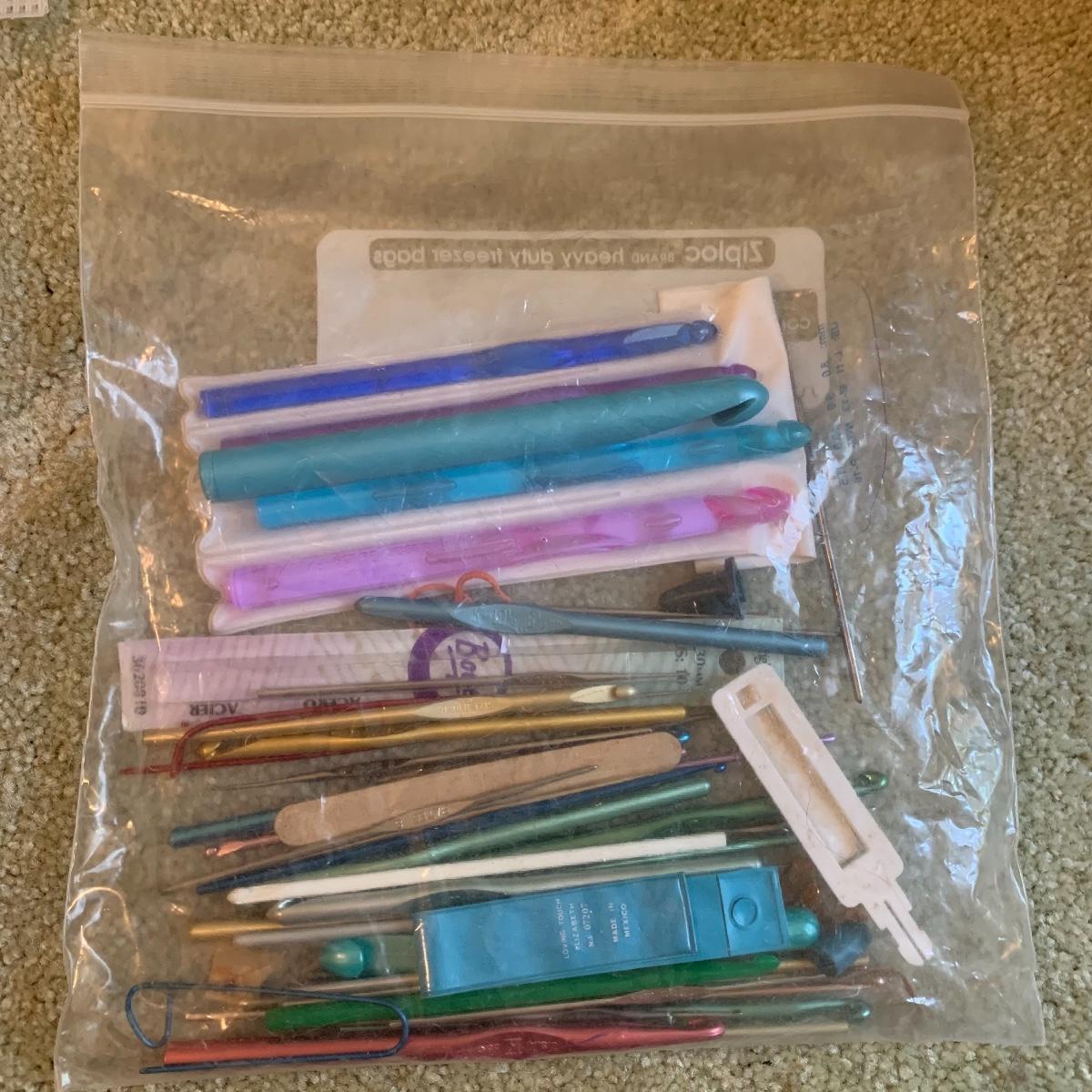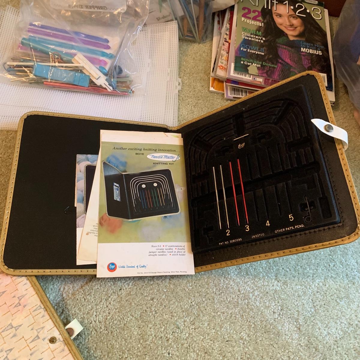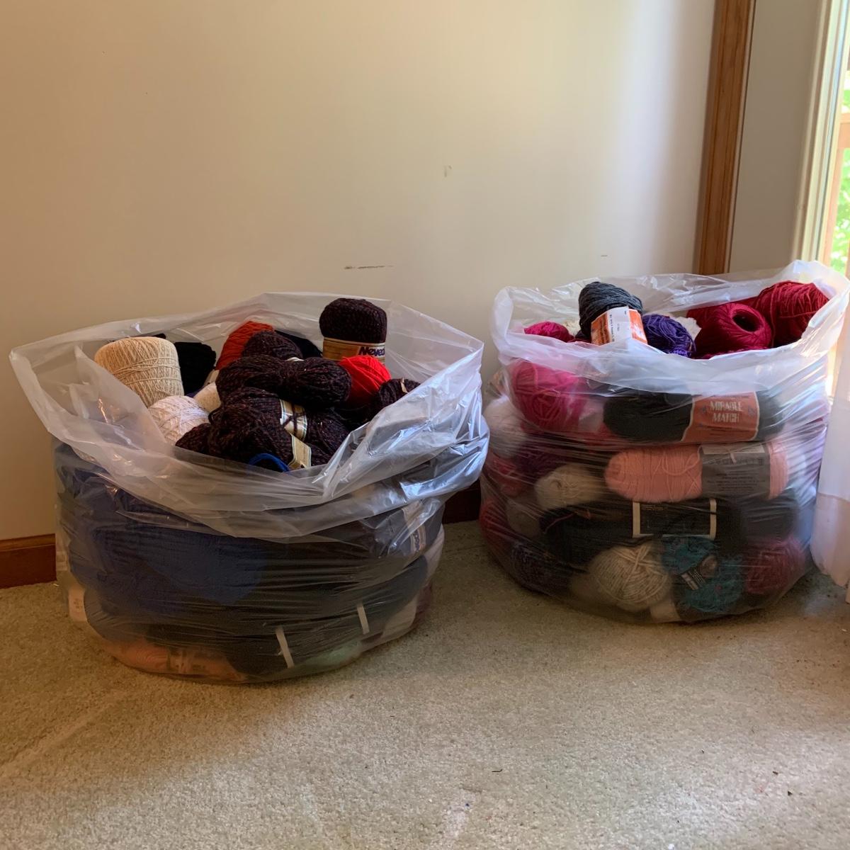 This lot is a knitter’s dream! There are two large bags full of skeins of yarn of all different colors, textures, and weights. Many are new skeins with their labels still on, and some have been used. There is a bag full of five started projects of scarves, sweaters, & more. There are ten crocheting, knitting, and other craft-themed magazines, as well as a huge ziplock bag full of all sorts of knitting needles and crochet hooks, (made from metal, plastic, and wood) as well as some other miscellaneous supplies. There are a couple knitting themed decorations as well, a little basket with yarn and a knitting fairy whose wing has broken off but can be fixed with glue to be like new. Local pickup only.