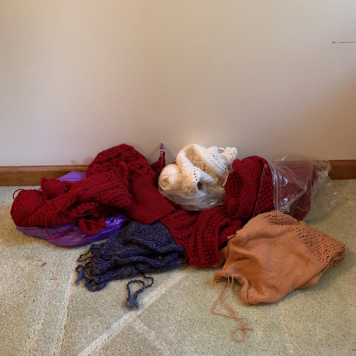 Lot 353 - Tons of Yarn w/ Knitting & Crochet Supplies & Projects Started